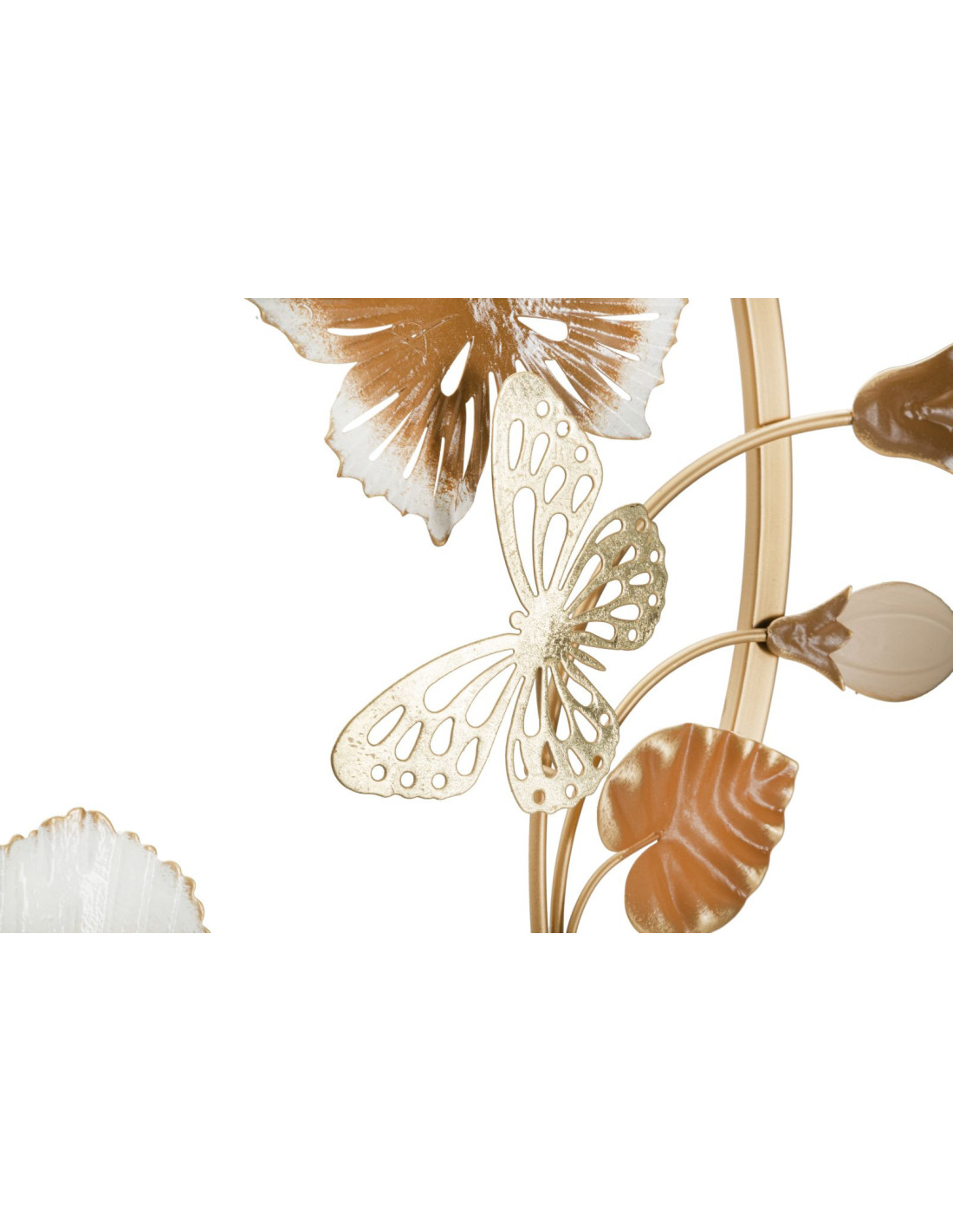 Décoration murale design Papillons Fleurs Feuilles Métal Doré Blanc crème Marron Rouns