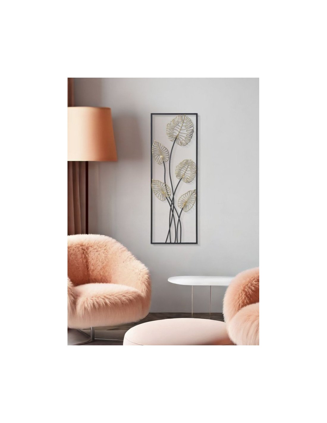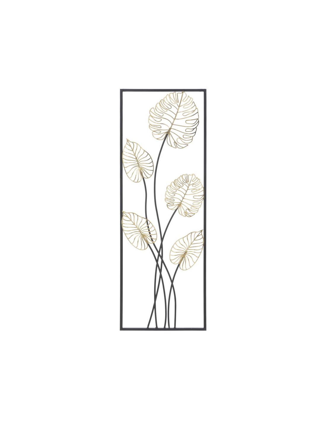 Décoration murale moderne Feuilles tropicales 31x90 Métal Doré Noir Luxy B