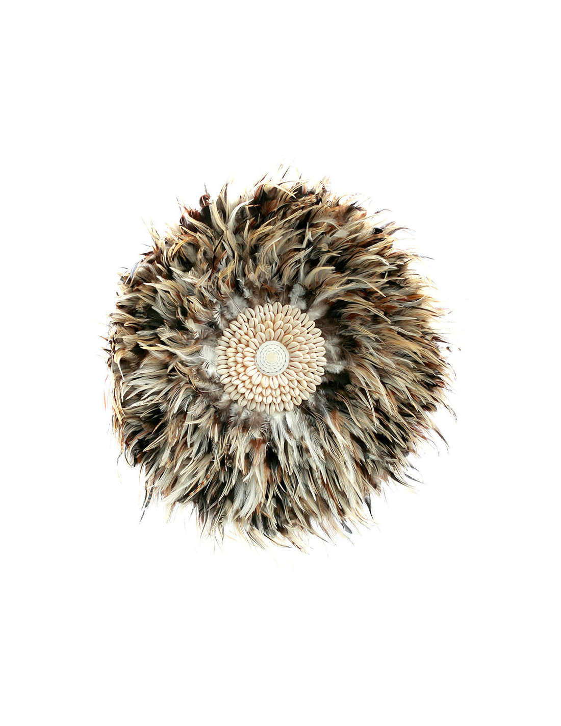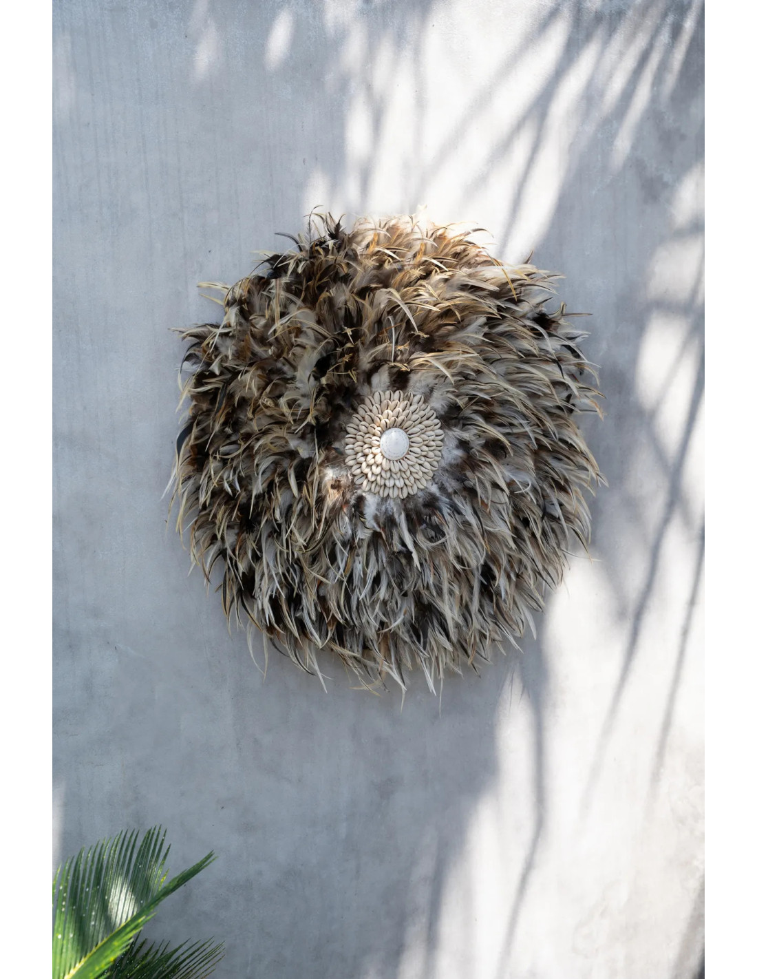 Décoration murale originale Jujuhat balinais 50 cm en Plume Gris Marron Coquillage Blanc The Coastal