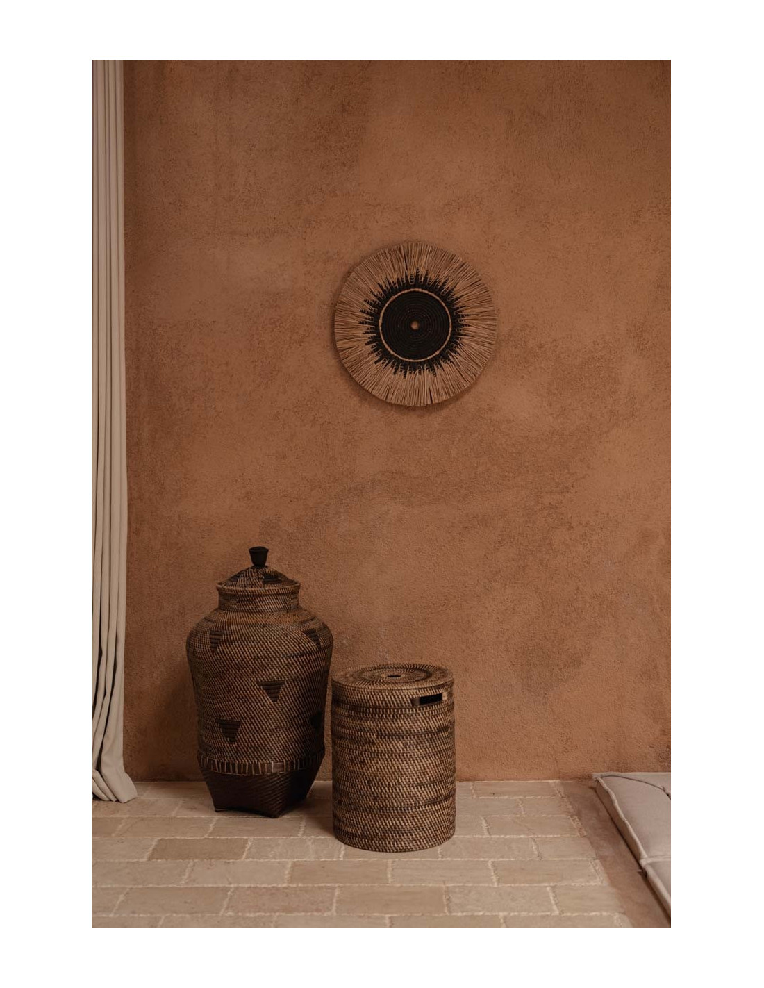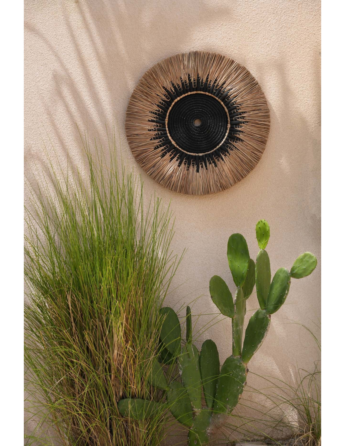 Décoration murale originale Macramé 60 cm en Herbe Naturel Coton Raphia Noir The Raffia