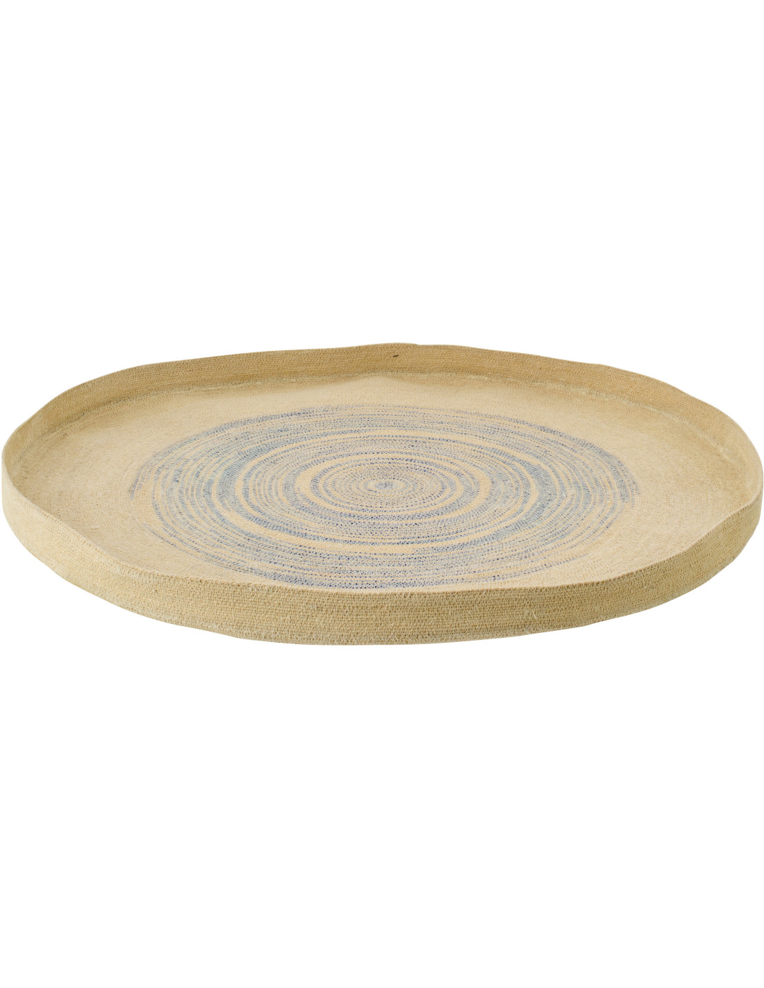 Une pièce monumentale qui transforme instantanément votre mur. Avec son diamètre impressionnant et ses motifs bleutés, cette décoration murale en fibres naturelles impose un style à la fois apaisant et spectaculaire.