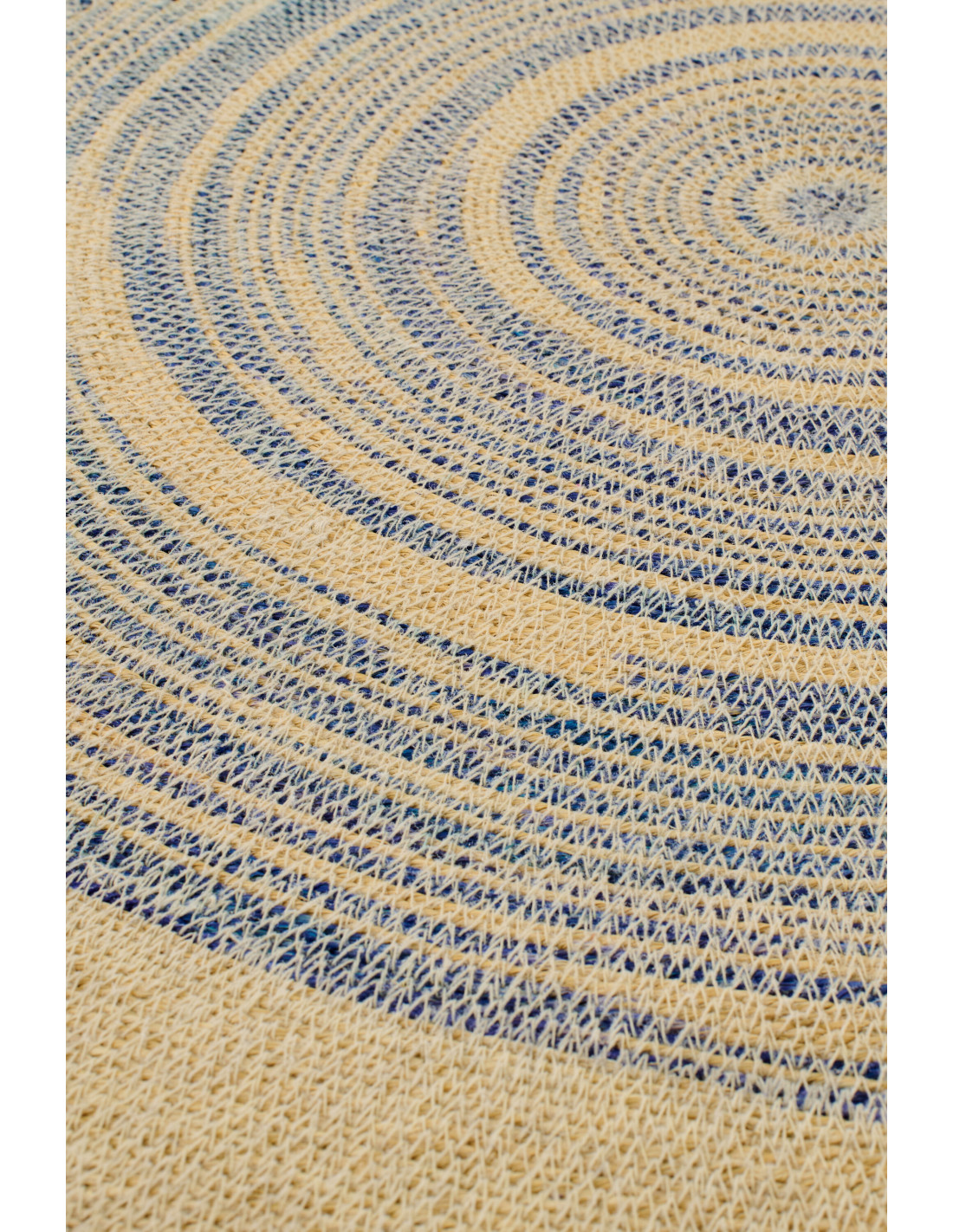 Les cercles concentriques bleutés dessinent un motif captivant qui attire naturellement le regard. Ce jeu graphique apporte du rythme tout en conservant une sensation de calme et d’équilibre.