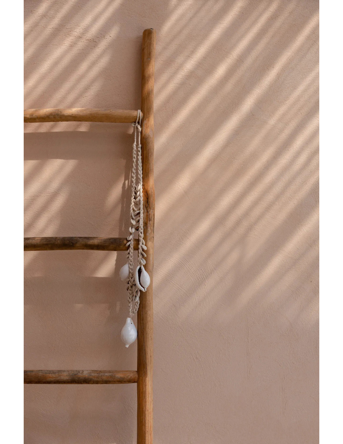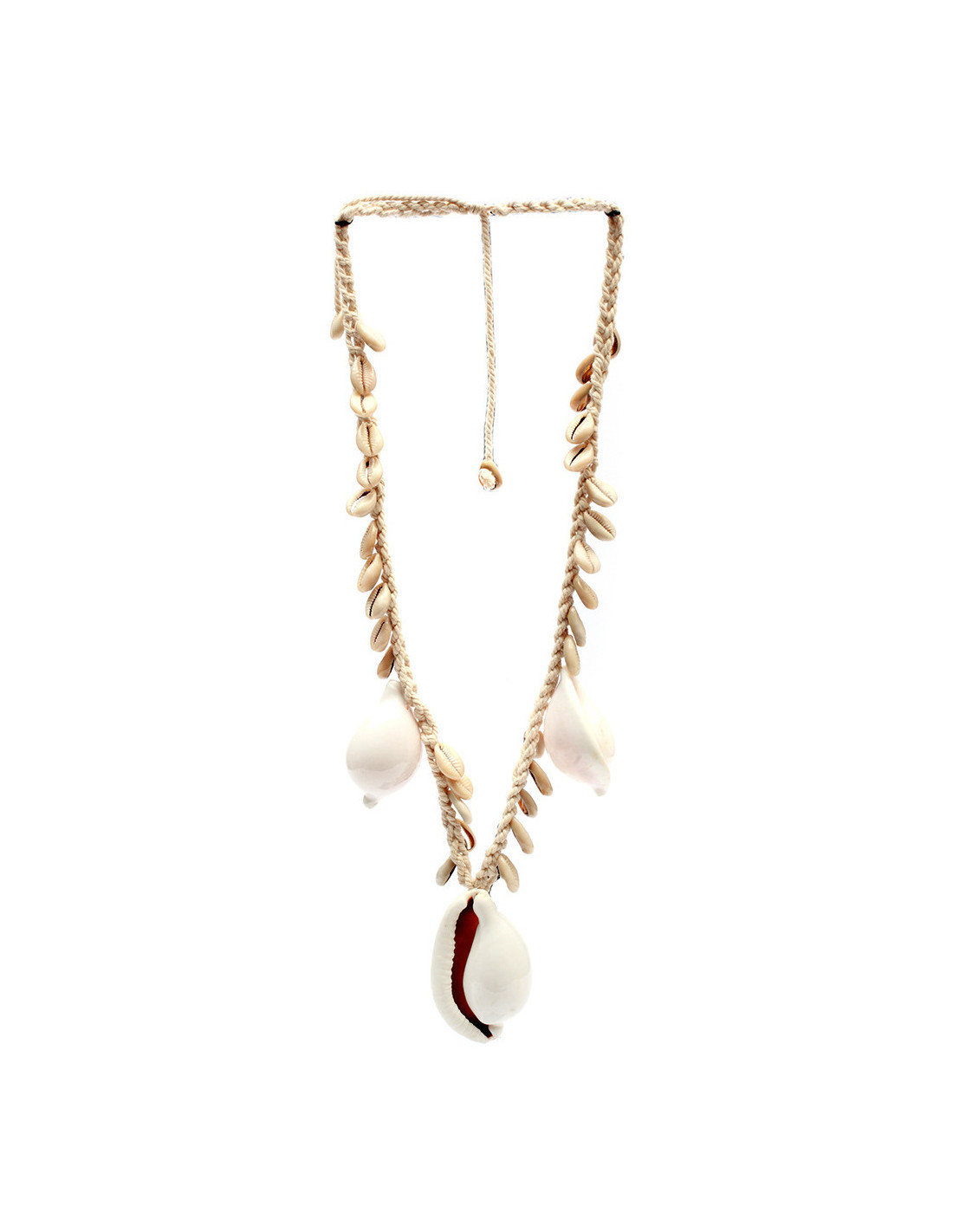 Décoration originale à suspendre Collier balinais en Coton Coquillage Blanc The Big White Cowrie