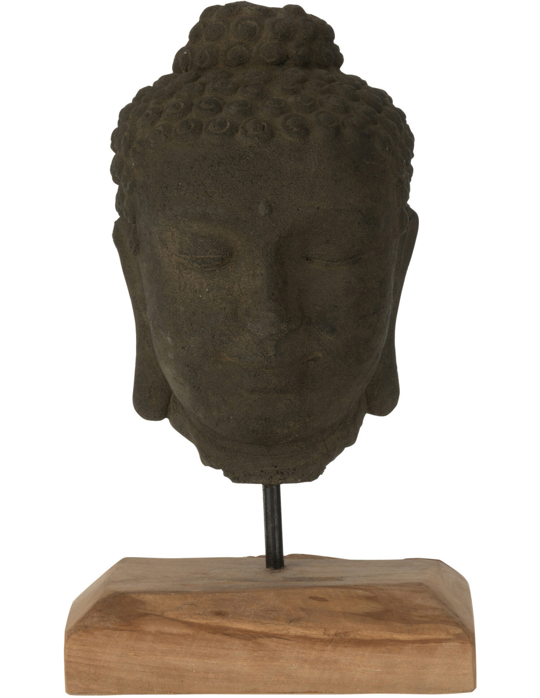 Décoration sur pied Tête de bouddha Hauteur 45 cm en Ciment Noir Bois de teck Naturel Elna