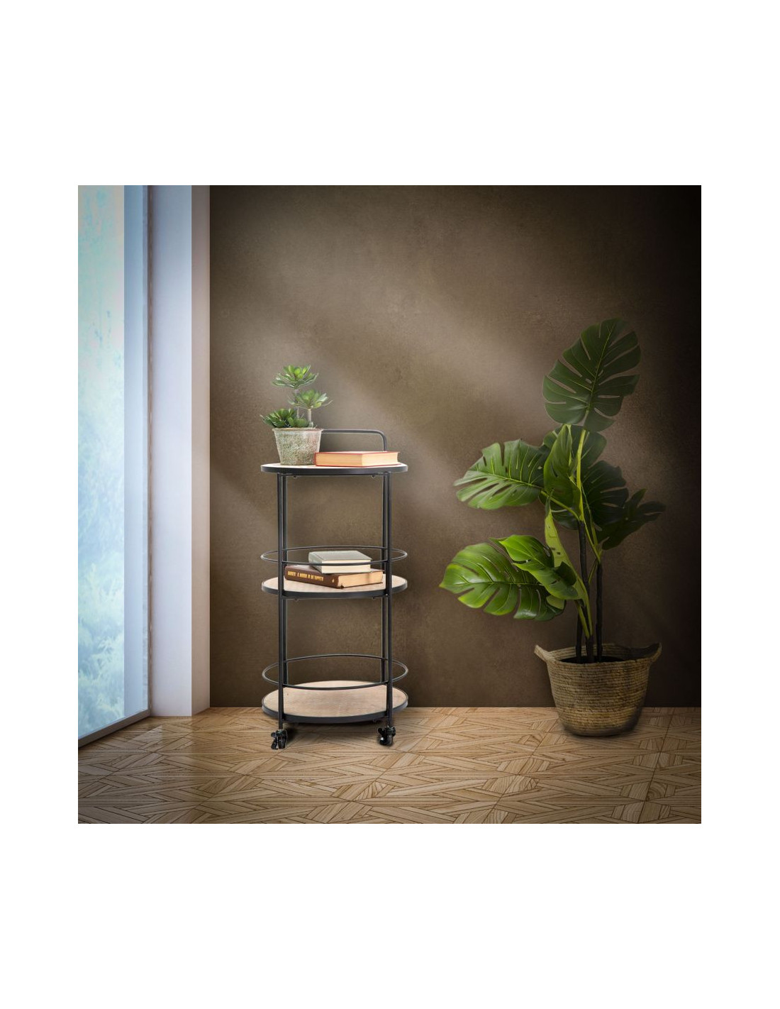 Desserte moderne chic sur roues 2 niveaux en Métal Vert clair Verre Transparent Zephyr