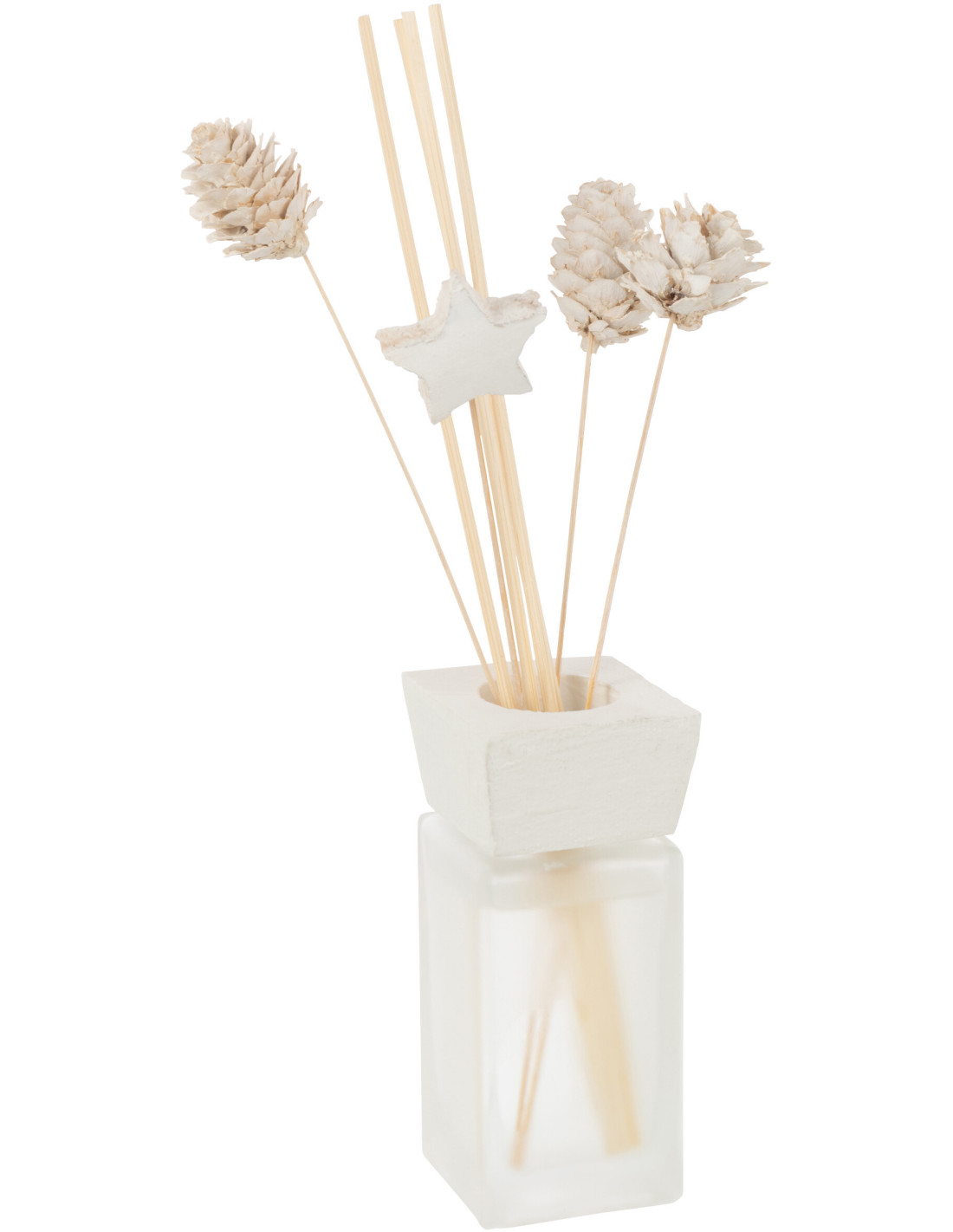 Diffuseur de parfum à bâtonnets Pine Eucalyptus 100 ml Verre Blanc Fleurs séchées Aroméya