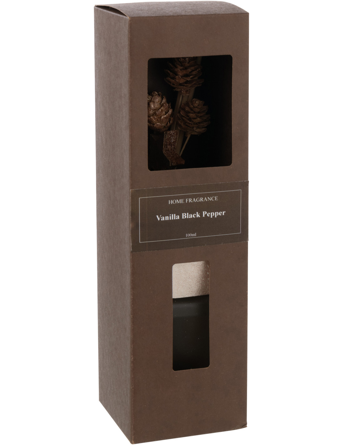Diffuseur de parfum à bâtonnets Vanilla Black Pepper 100 ml Verre Blanc Fleurs séchées Aroméya