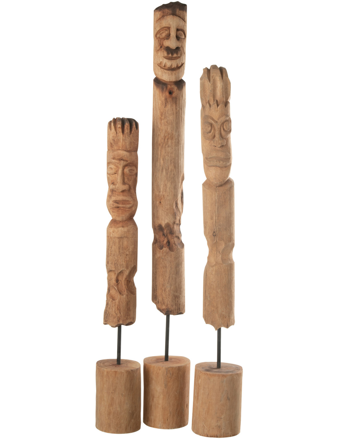 Décoration sur pied 3 Totems Doodem en Bois de manguier Naturel Métal