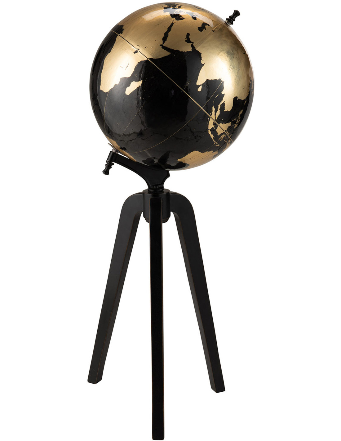 Globe terrestre décoratif Ellen Hauteur 100 cm en Bois de manguier Noir Plastique Doré Noir