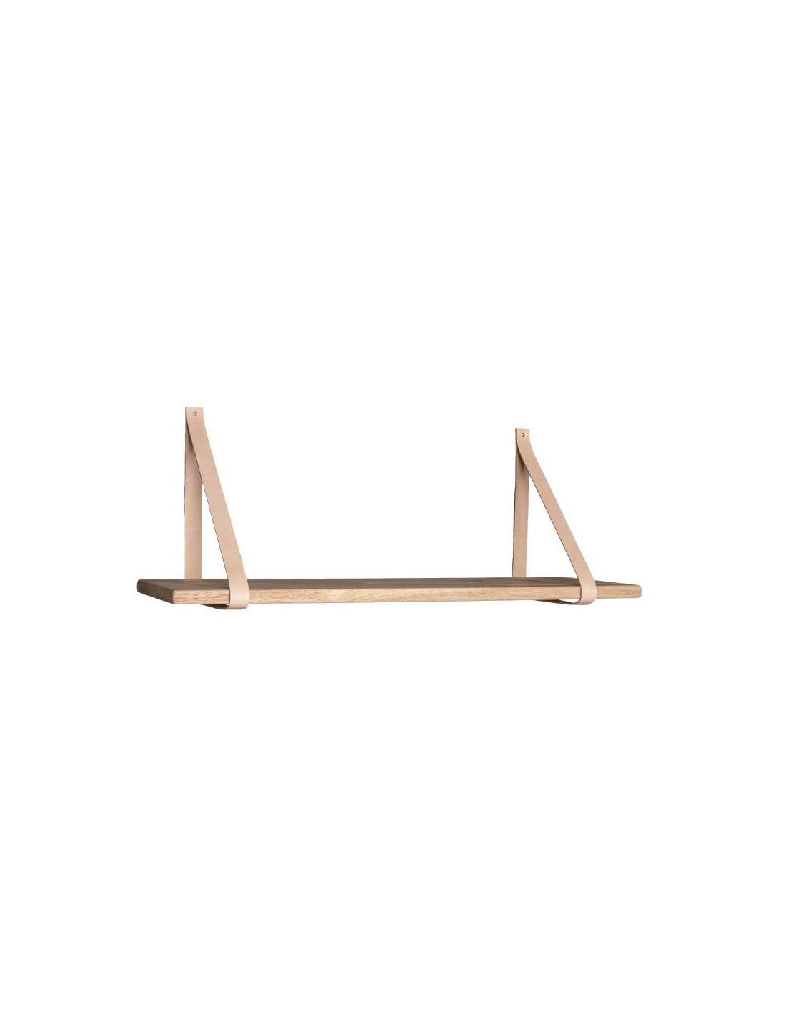 Étagère murale moderne 80 cm Bois d'hévéa Naturel Cuir véritable Marron Forno