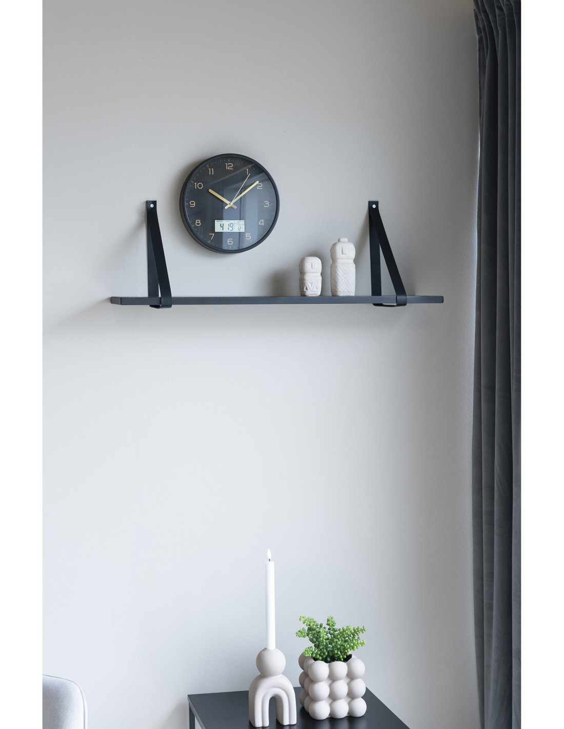 Étagère murale moderne 80 cm Bois d'hévéa Noir Cuir véritable Noir Forno