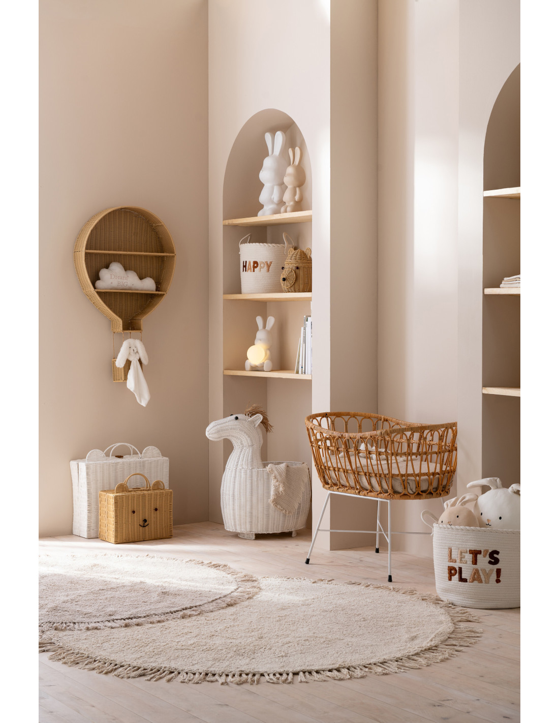 Étagère murale originale Montgolfière 2 niveaux Rotin synthétique Naturel Tressé Métal Aéria