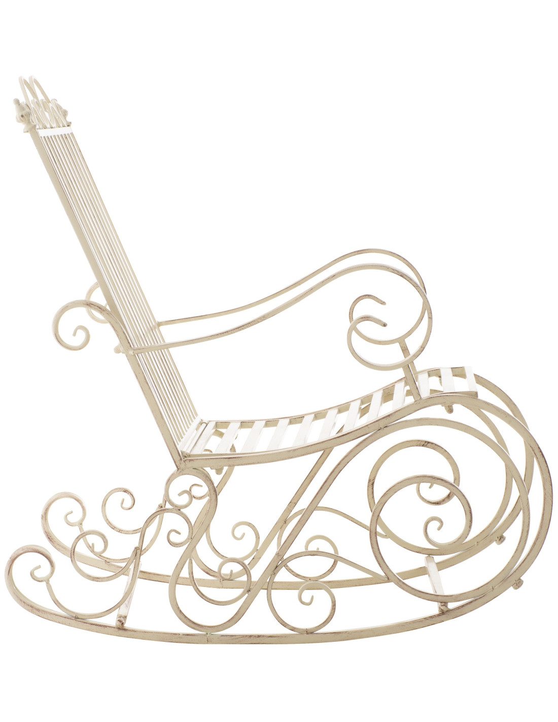 Fauteuil à bascule de jardin romantique vintage Métal Blanc crème Patiné Oryal