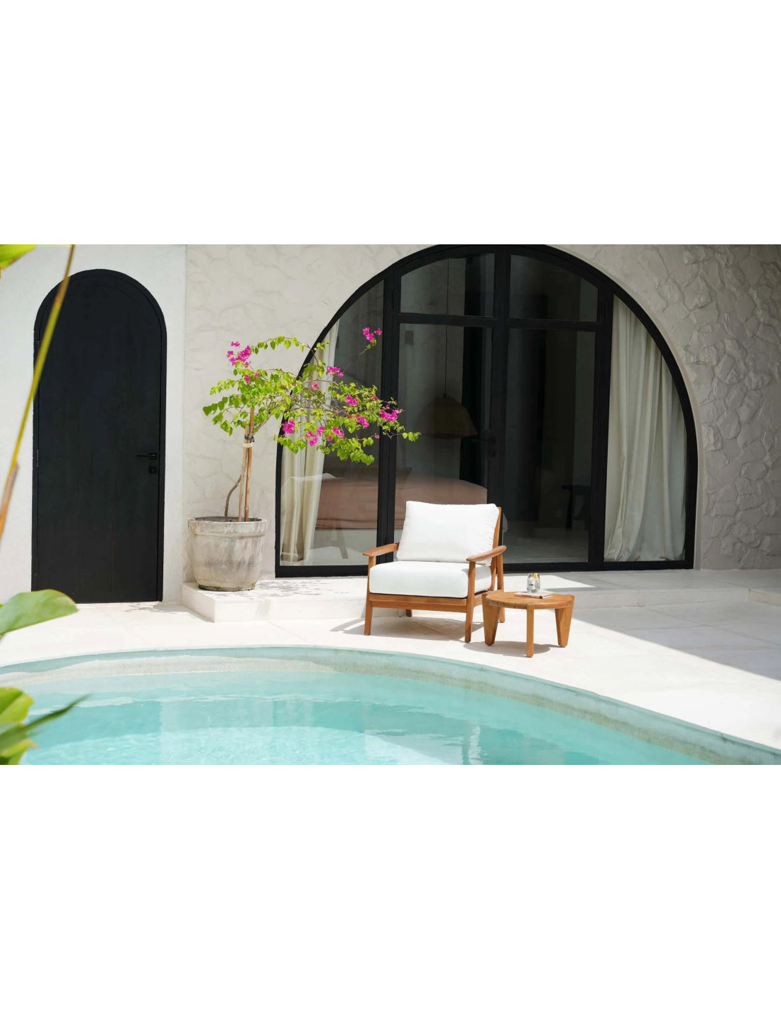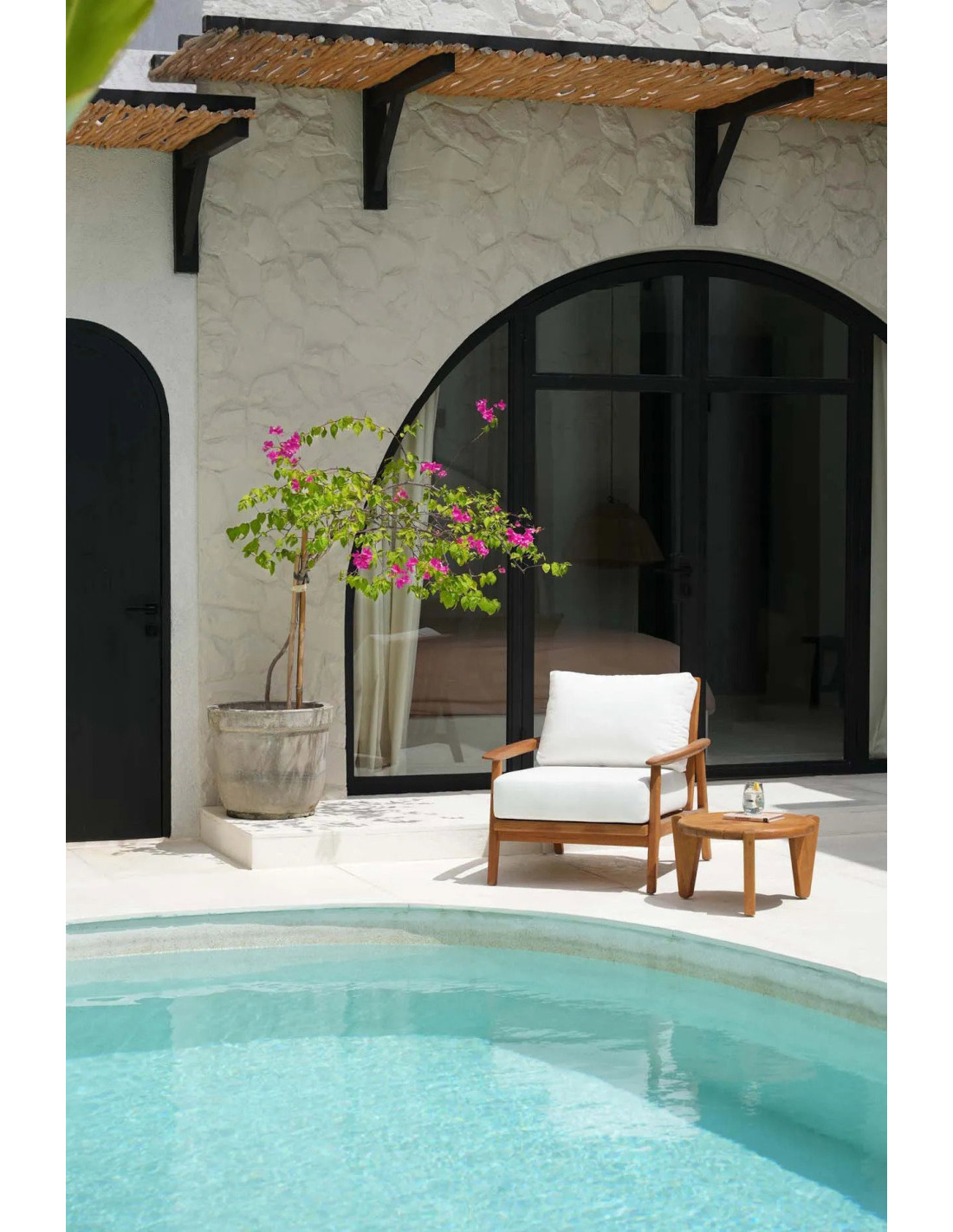 Fauteuil de jardin original en Bois de teck recyclé Naturel Tissu Blanc The Lazy