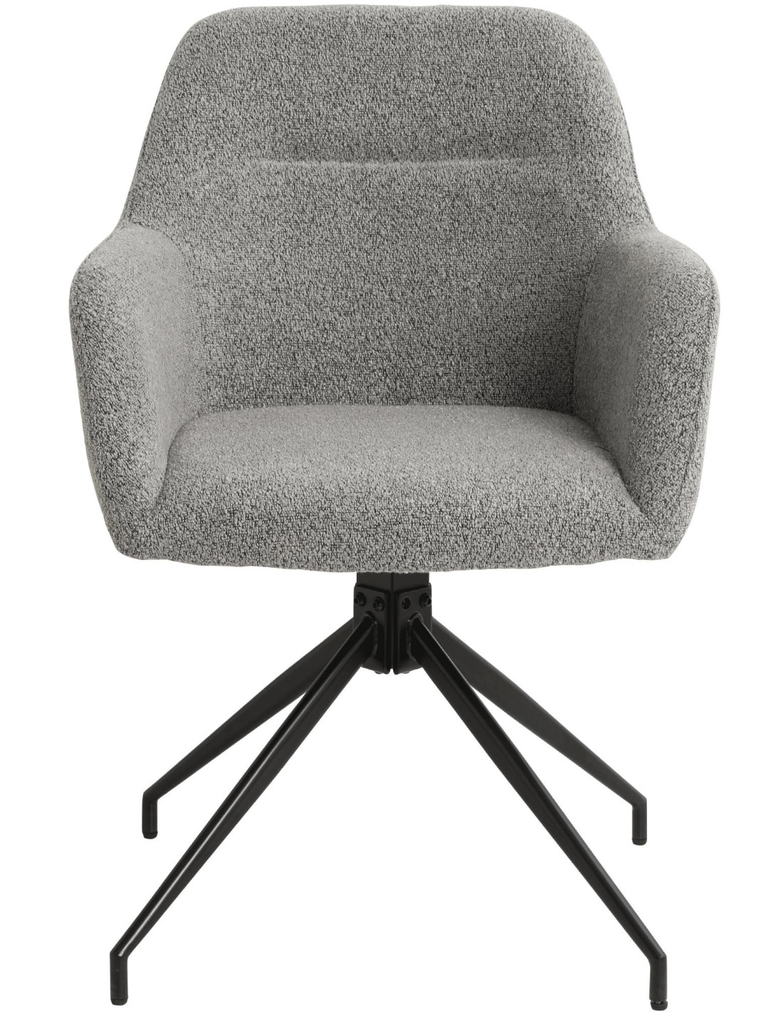 Fauteuil de table bouclette pivotant Tissu Gris Bouclé Métal Noir Teddy - 1