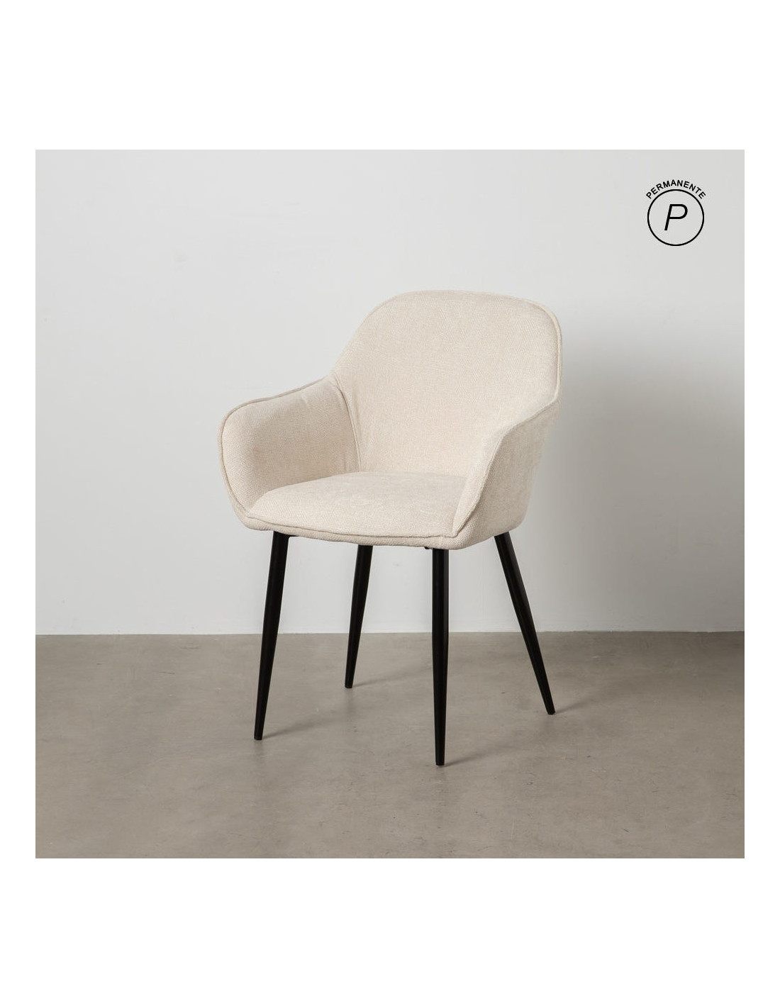 Fauteuil de table contemporain chic Tissu Blanc Métal Noir Varelo