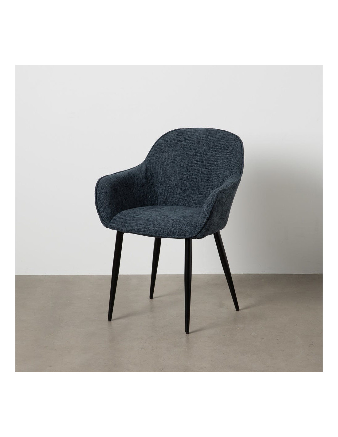 Fauteuil de table contemporain chic Tissu Bleu Métal Noir Varelo
