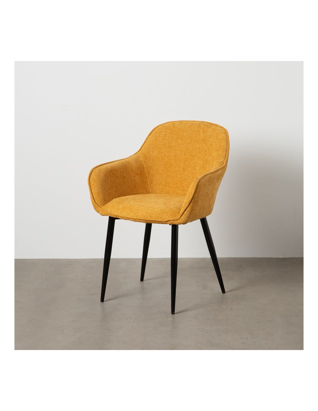 Fauteuil de table contemporain chic Tissu Jaune Métal Noir Varelo
