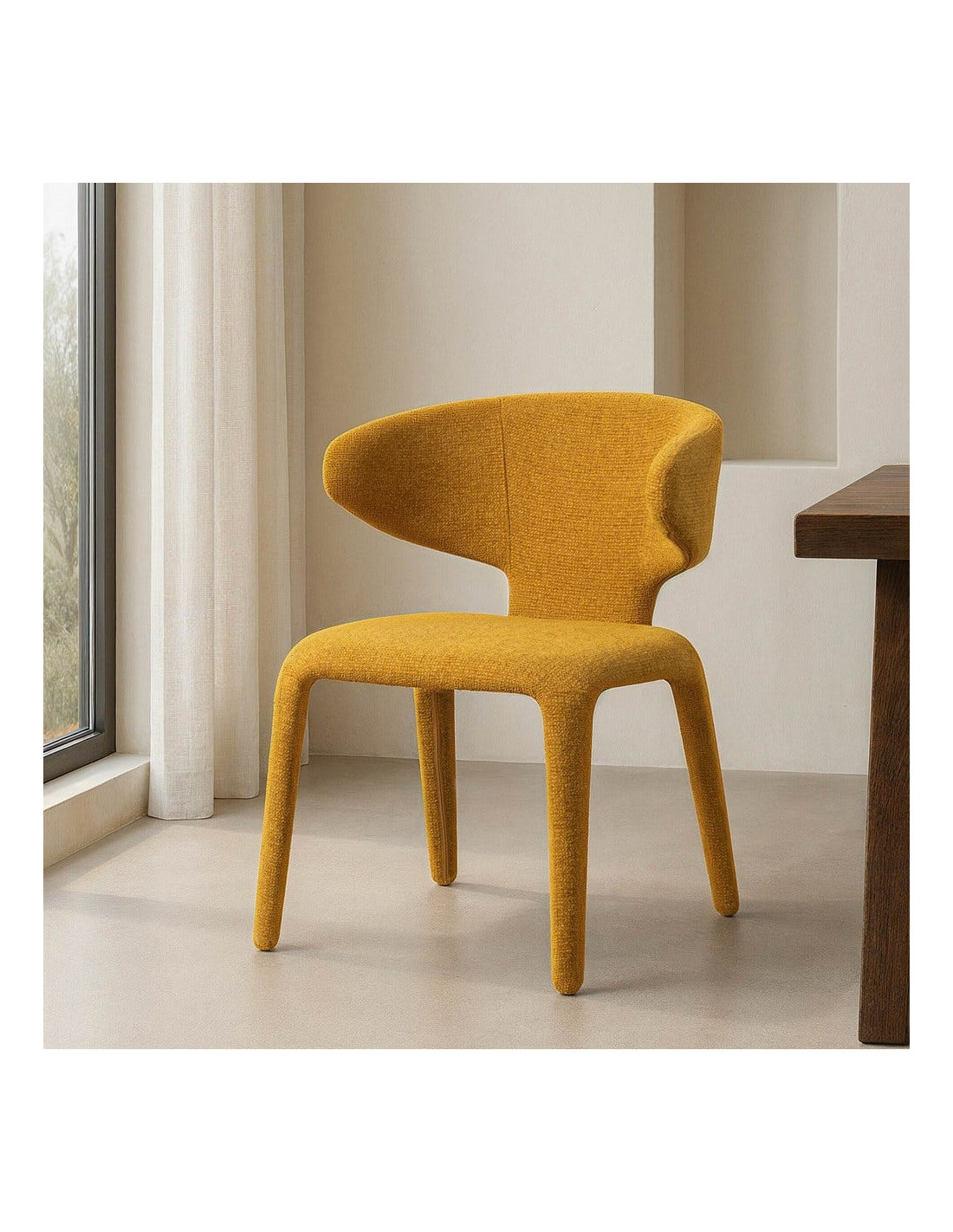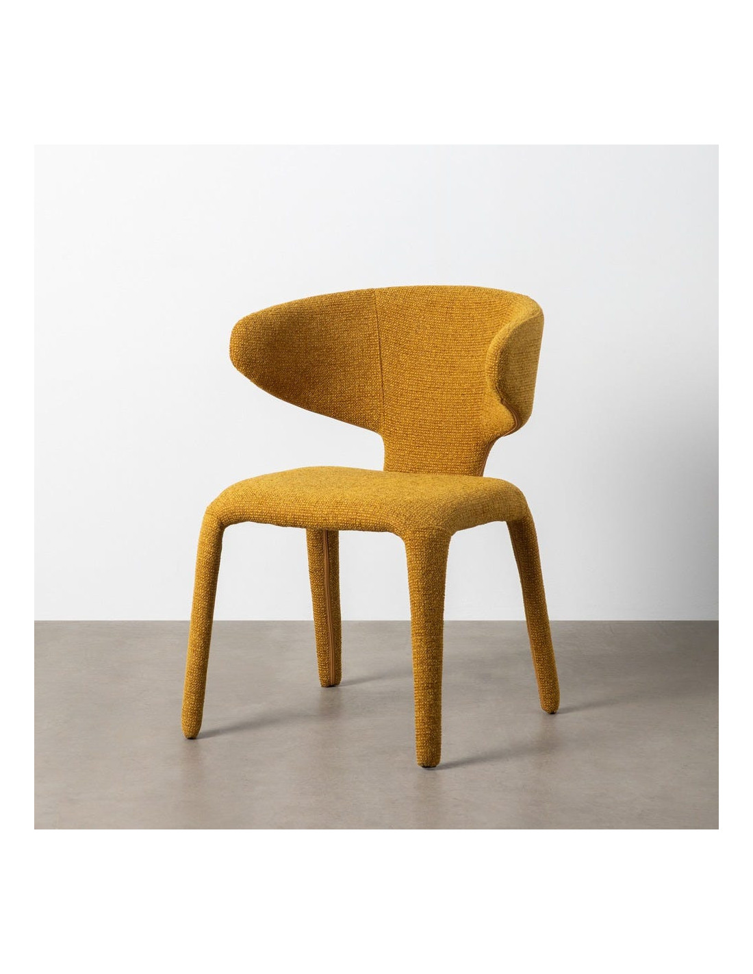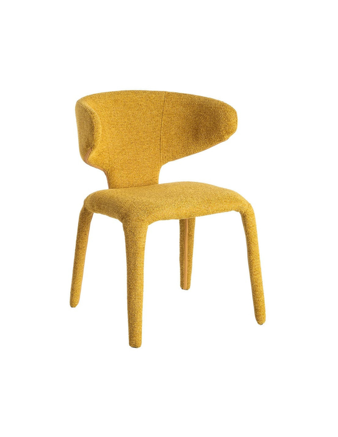 Fauteuil de table design chic en Tissu Jaune moutarde Chiné Métal Uyana (Lot de 2) - 1