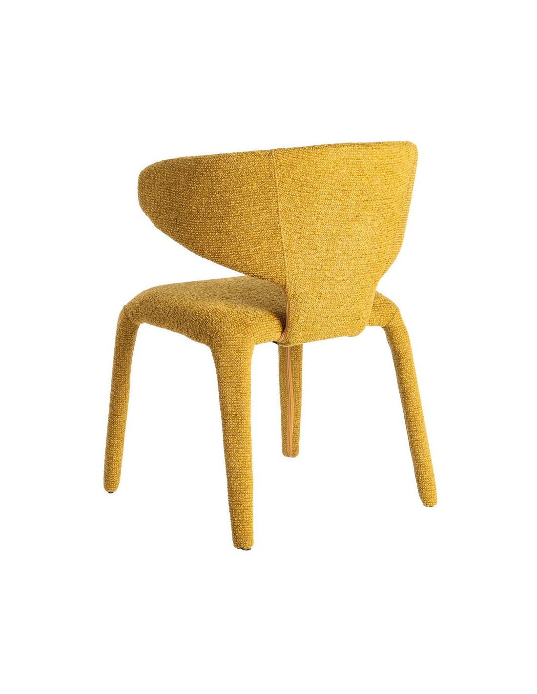 Fauteuil de table design chic en Tissu Jaune moutarde Chiné Métal Uyana (Lot de 2) - 4