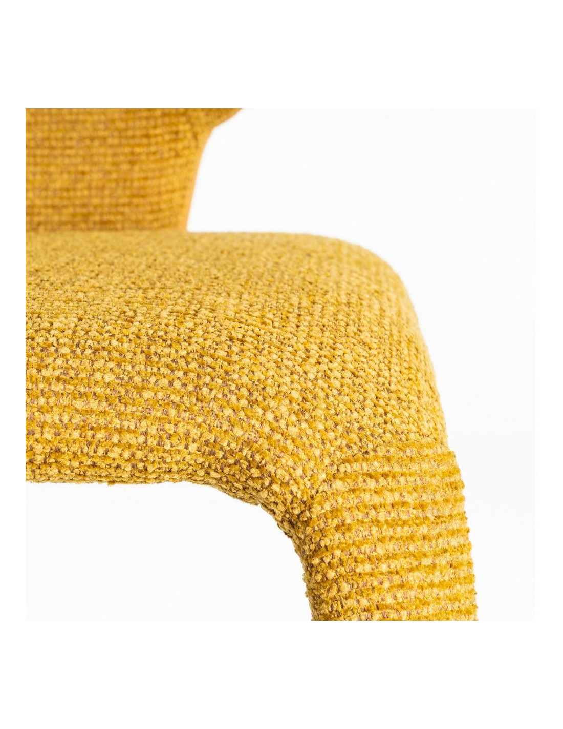 Fauteuil de table design chic en Tissu Jaune moutarde Chiné Métal Uyana (Lot de 2) - 5