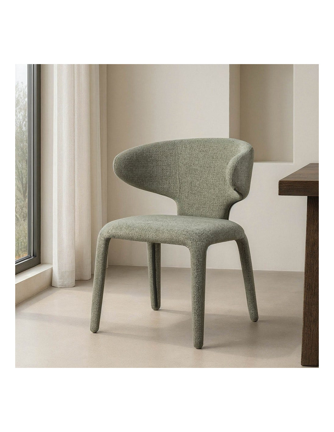Fauteuil de table design chic en Tissu Vert Chiné Métal Uyana (Lot de 2) - 3