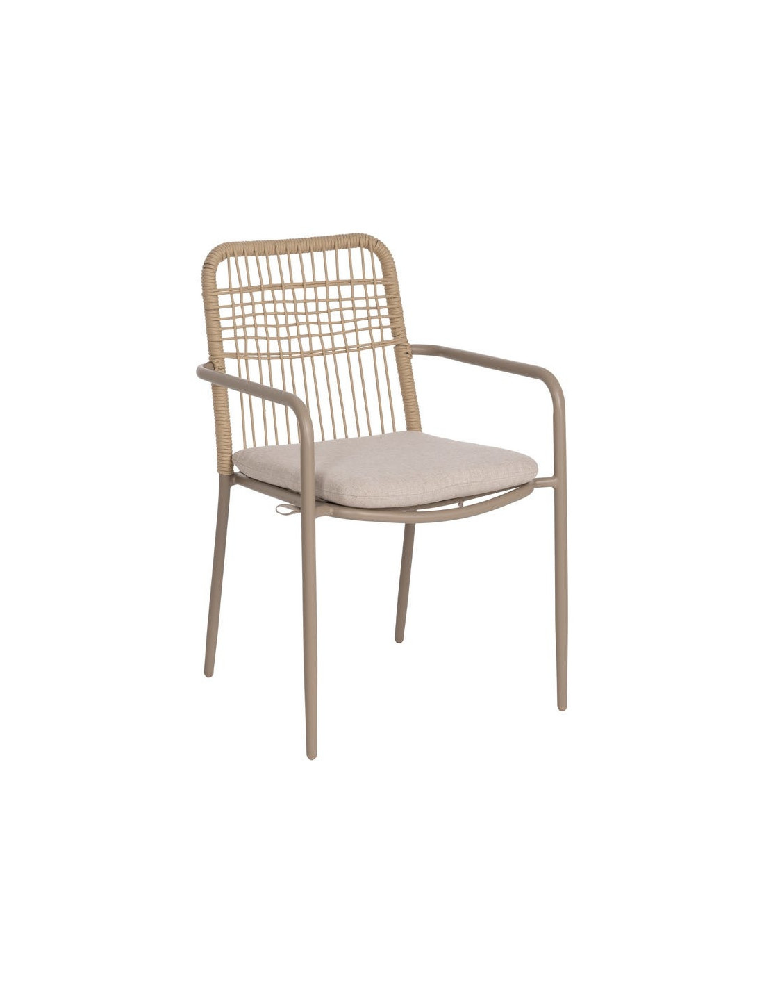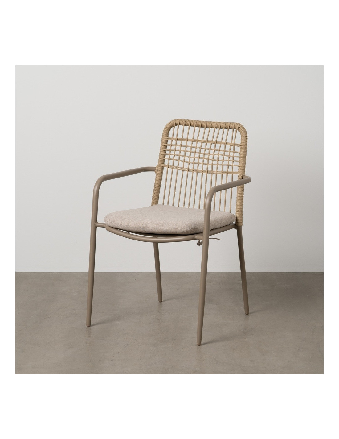 Fauteuil de table extérieur moderne en Métal Gris Rotin polyéthylène Naturel Tressé Tissu Beige Iban (Lot de 2) - 1