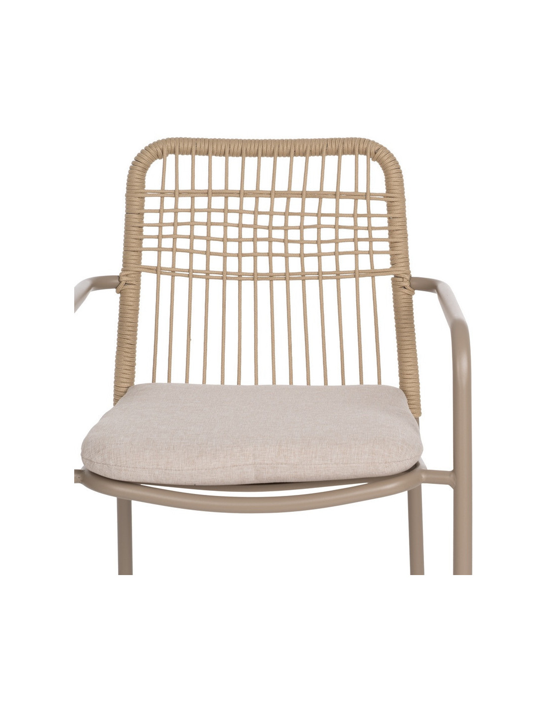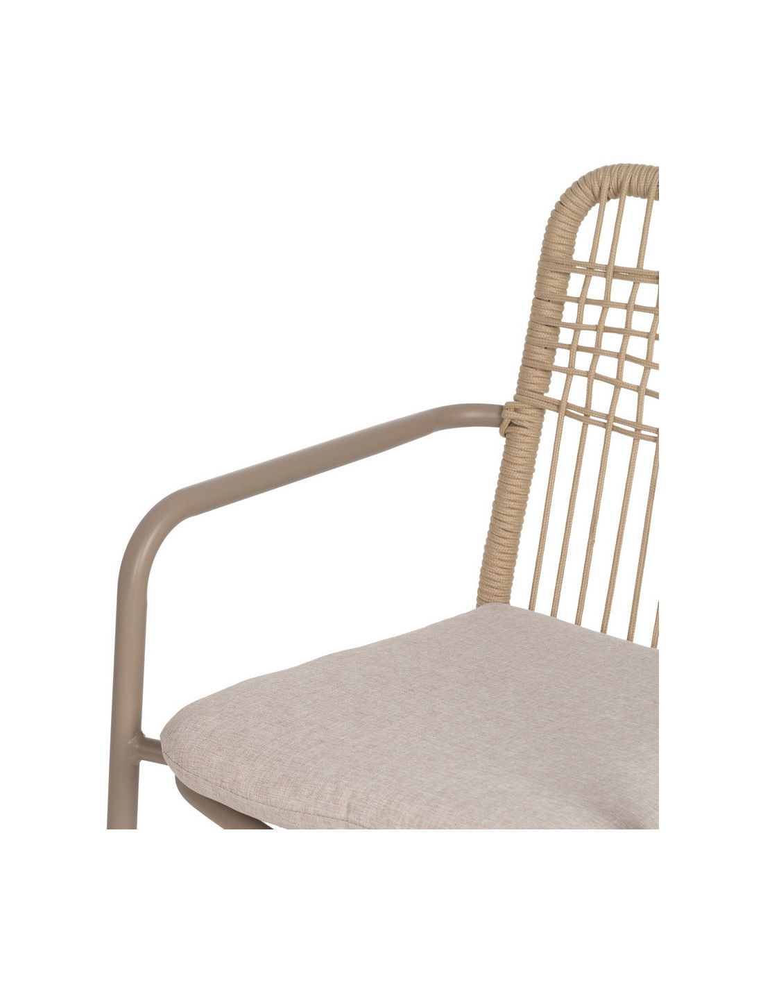Fauteuil de table extérieur moderne en Métal Gris Rotin polyéthylène Naturel Tressé Tissu Beige Iban (Lot de 2) - 8