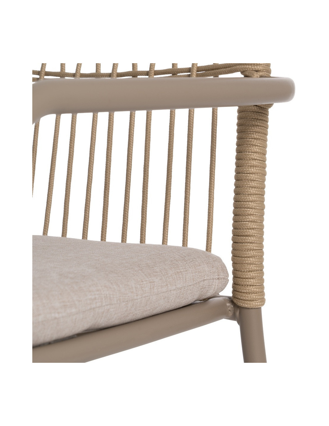 Fauteuil de table extérieur moderne en Métal Gris Rotin polyéthylène Naturel Tressé Tissu Beige Iban (Lot de 2) - 11