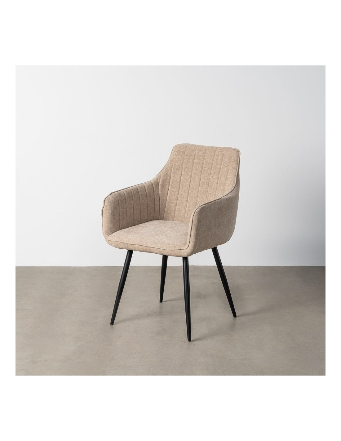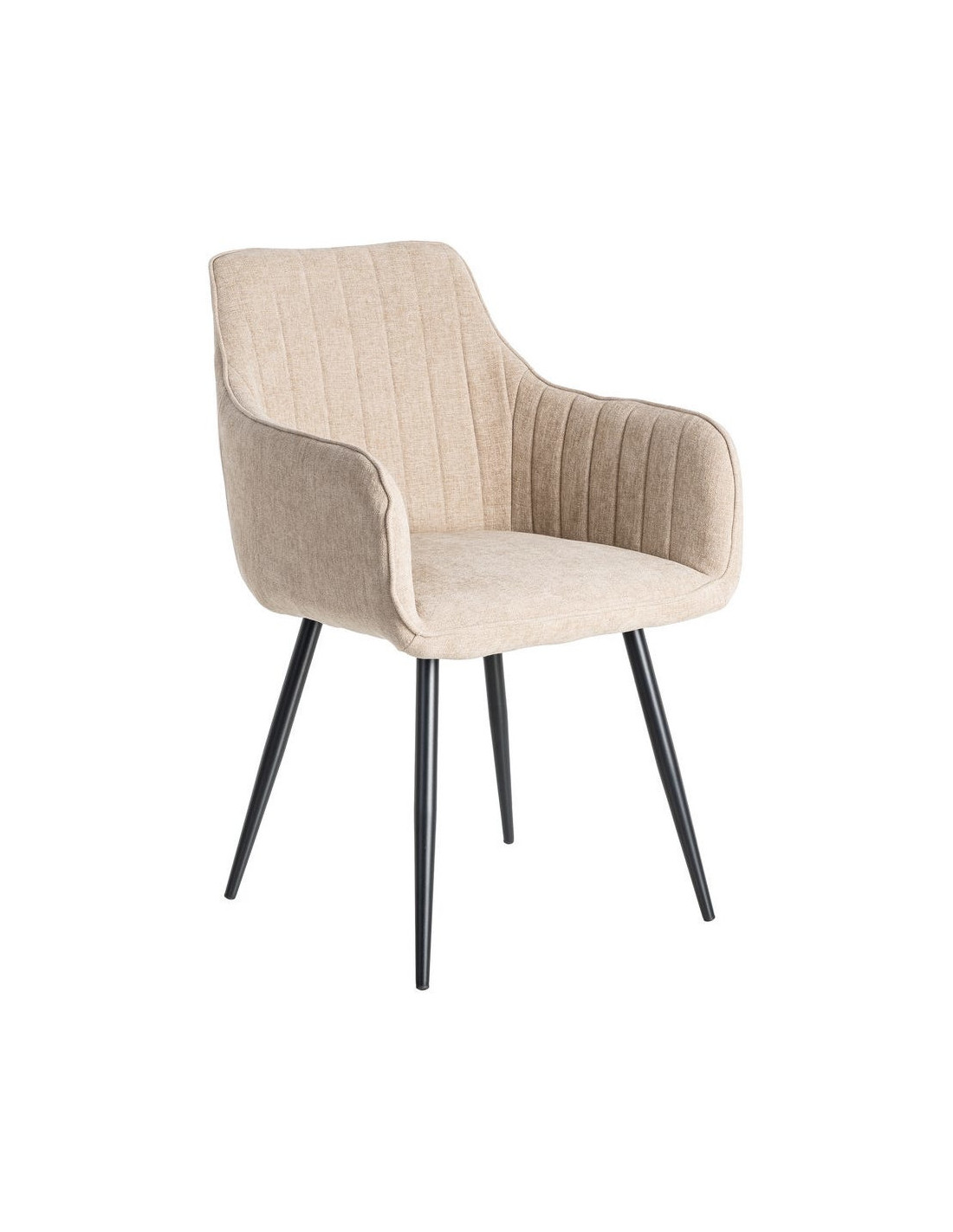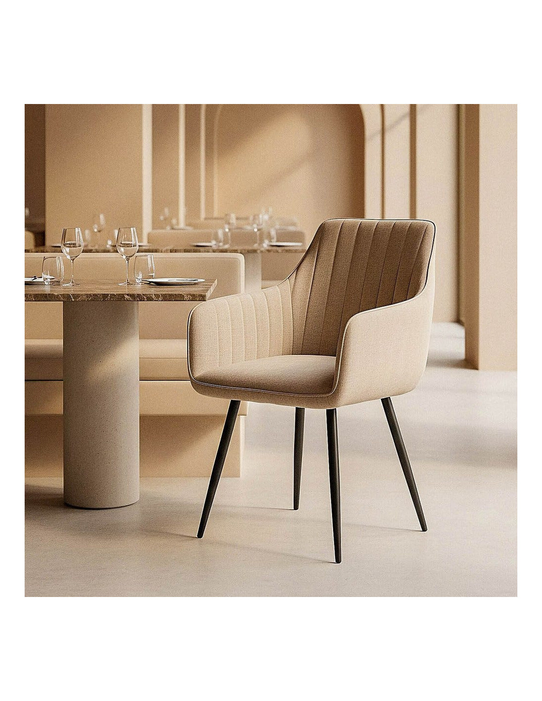 Fauteuil de table haut de gamme en Tissu Beige Surpiqûre verticale Métal Noir Ohlira (Lot de 2) Ohlira (Lot de 2)