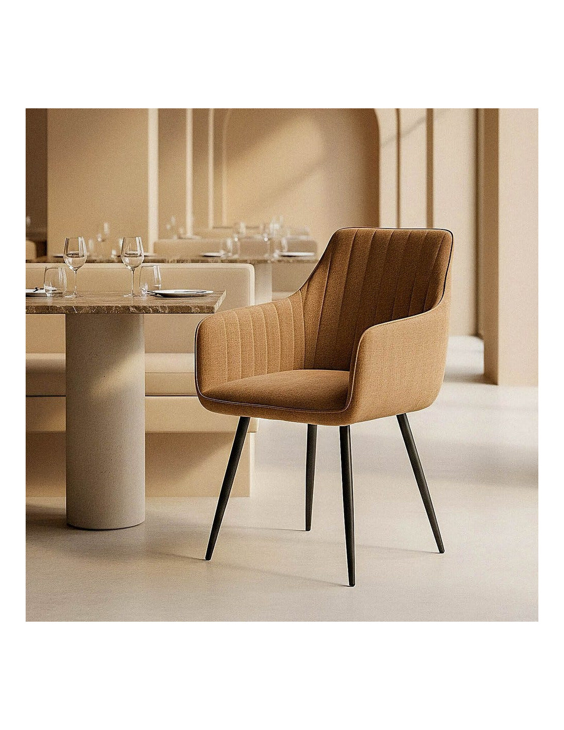 Fauteuil de table haut de gamme en Tissu Marron Surpiqûre verticale Métal Noir Ohlira (Lot de 2) - 6
