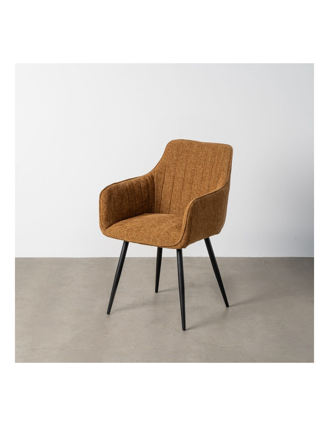 Fauteuil de table haut de gamme en Tissu Marron Surpiqûre verticale Métal Noir Ohlira (Lot de 2) - 1