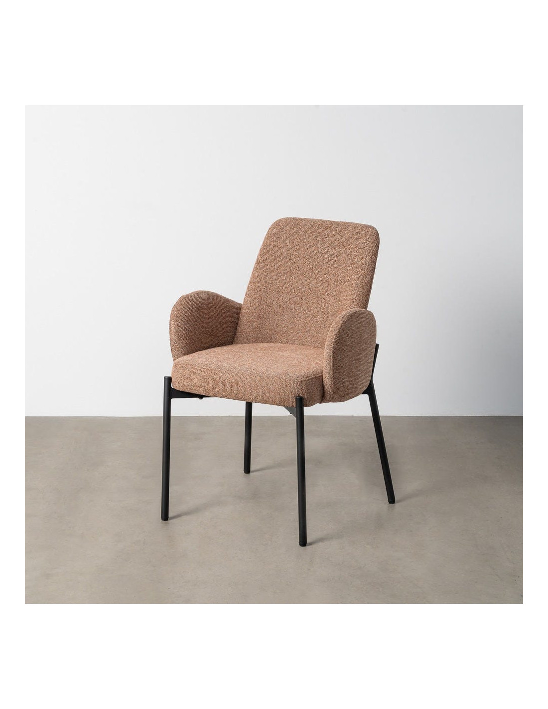 Fauteuil de table haut de gamme en Tissu Rose pêche Chiné Métal Noir Tilani (Lot de 2) - 1
