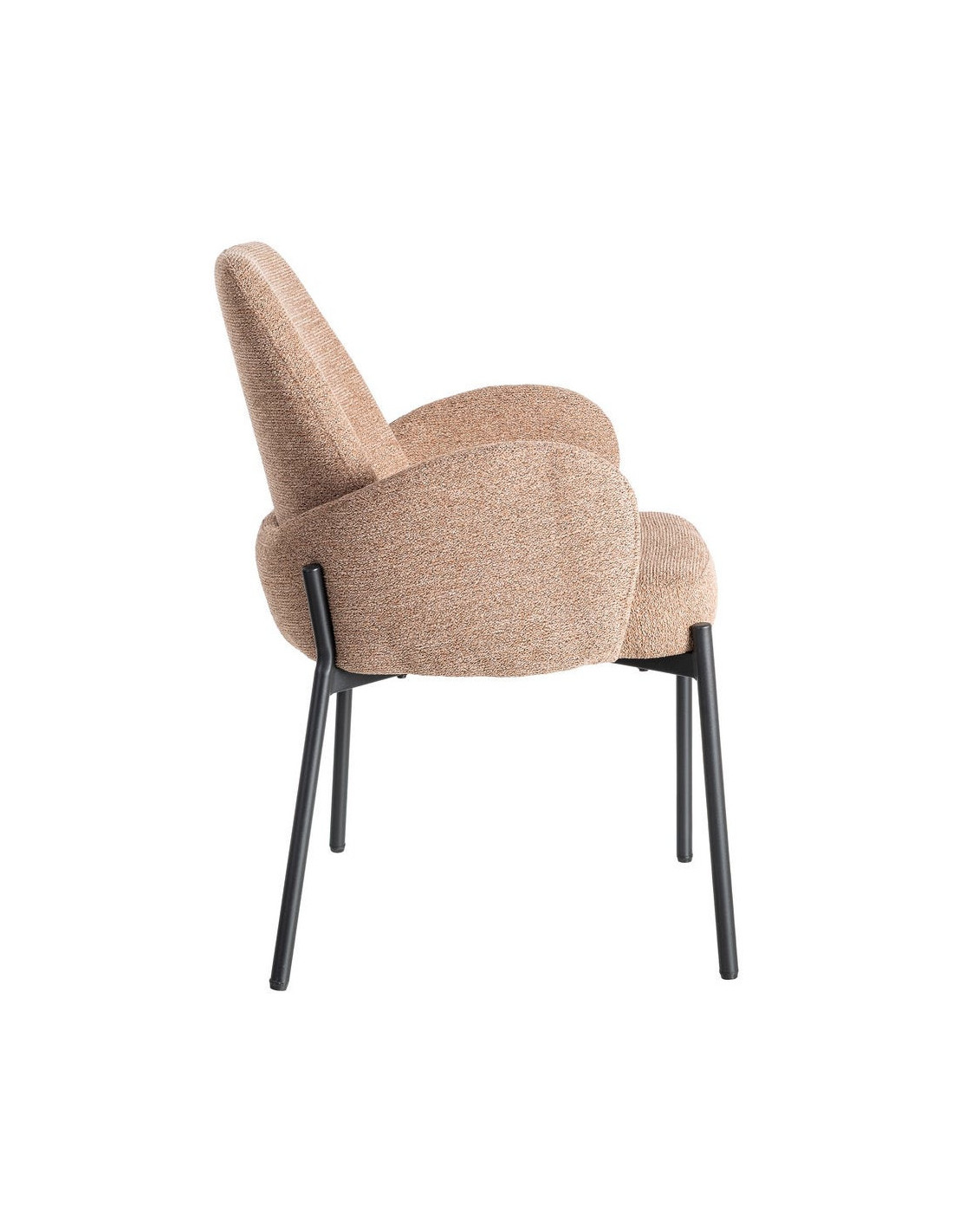 Fauteuil de table haut de gamme en Tissu Rose pêche Chiné Métal Noir Tilani (Lot de 2)