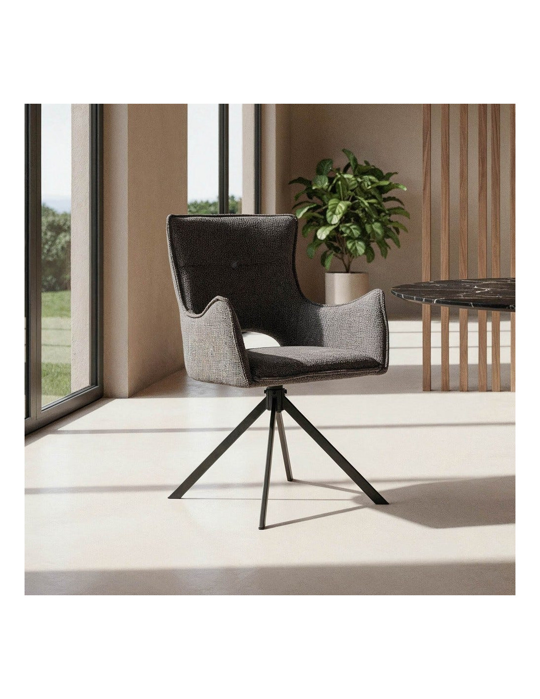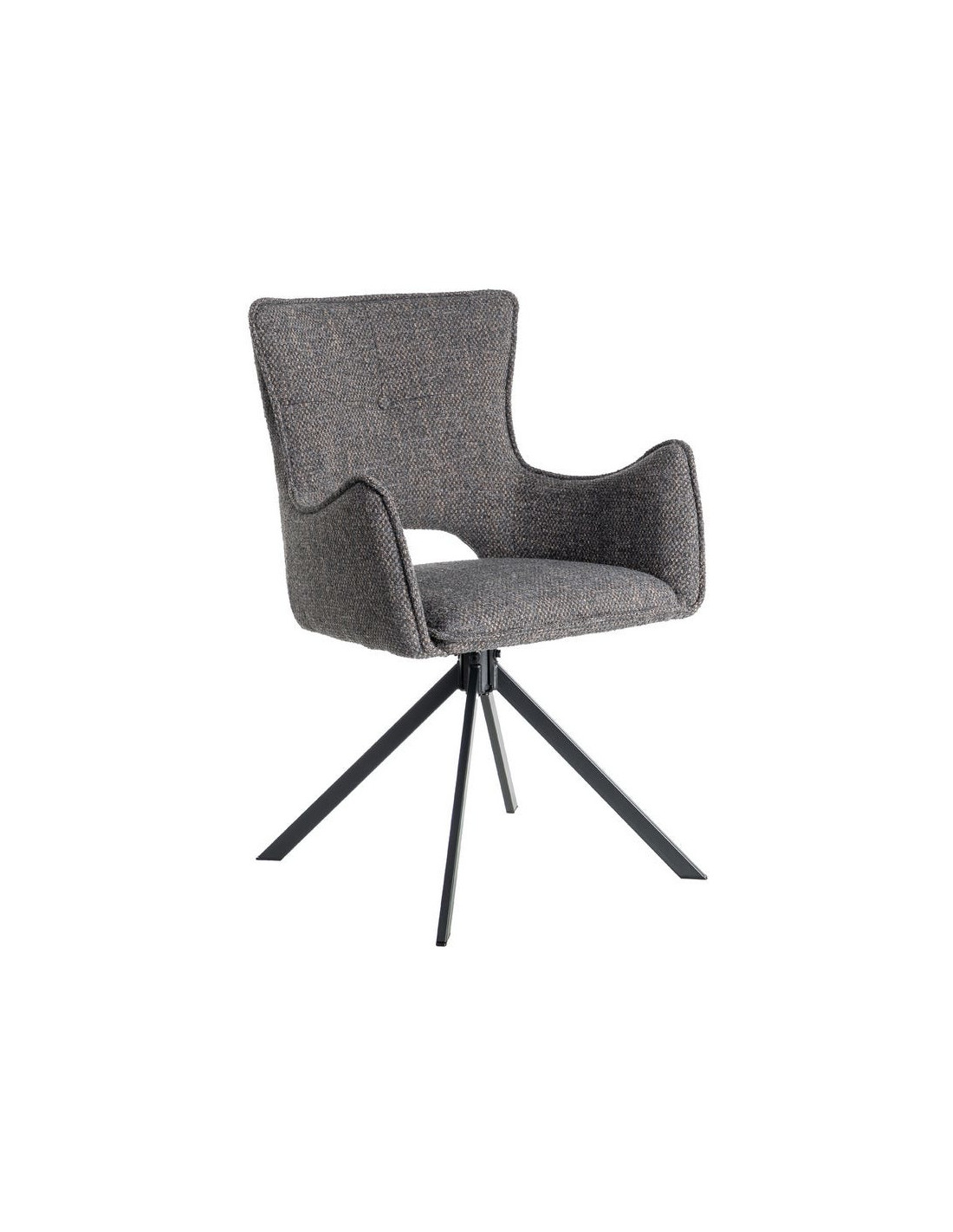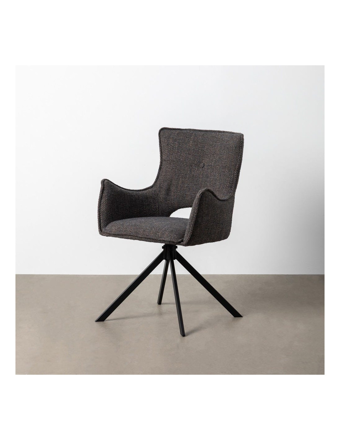 Fauteuil de table industriel chic Tissu Gris Métal Noir Ulrano (Lot de 2)
