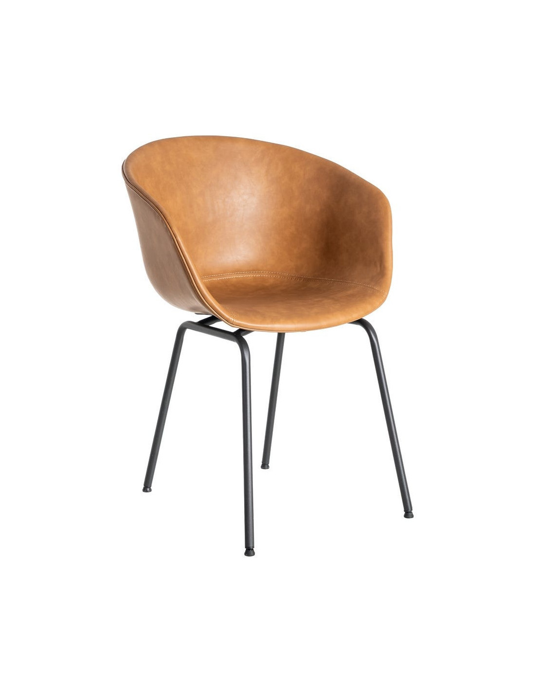 Fauteuil de table industriel Coque en Polyuréthane Marron camel Métal Noir Polypropylène Tiyora (Lot de 2) - 1