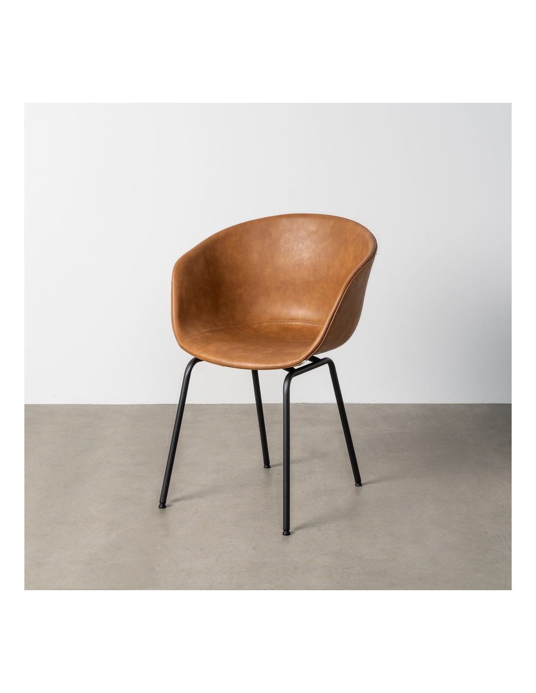 Fauteuil de table industriel Coque en Polyuréthane Marron camel Métal Noir Polypropylène Tiyora (Lot de 2) - 8