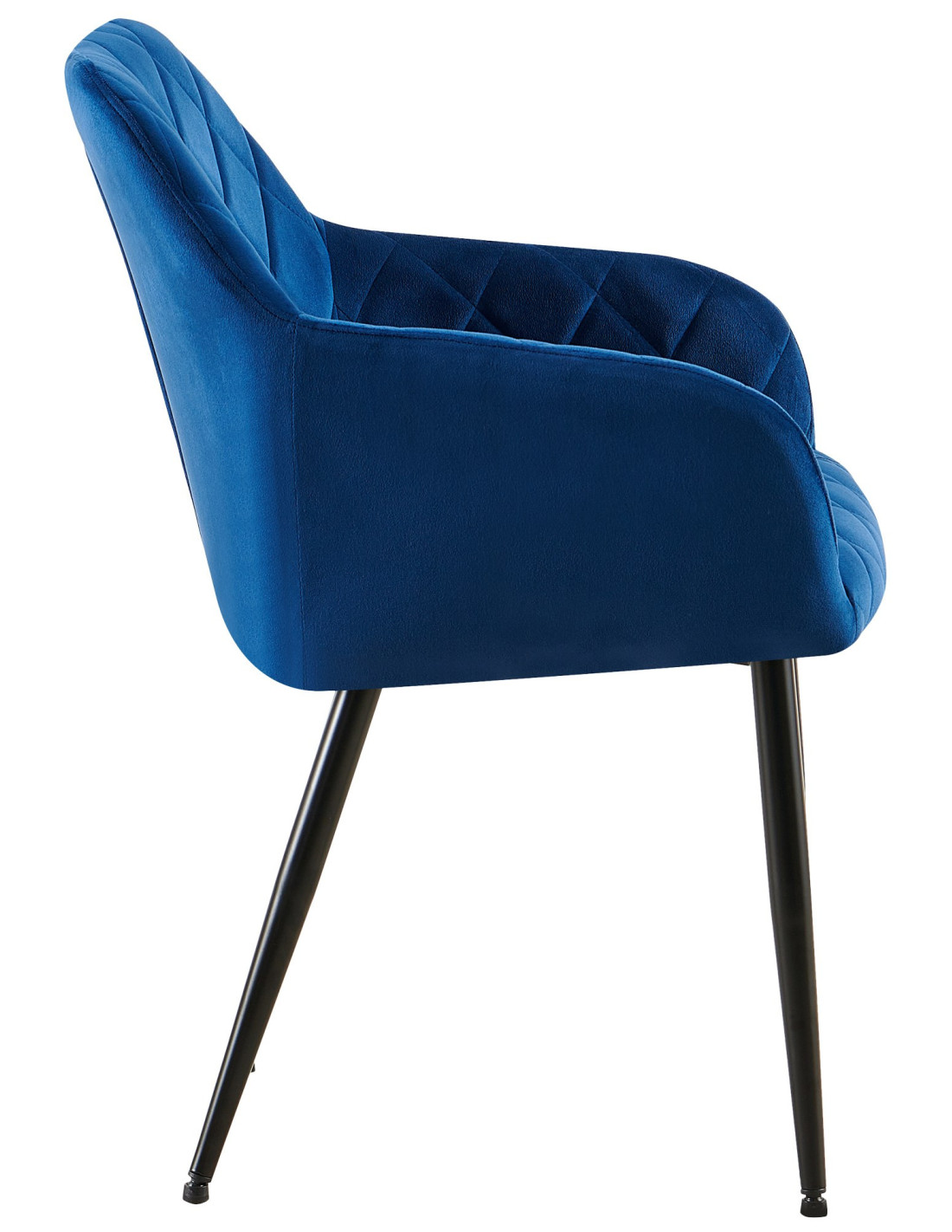 Fauteuil de table matelassé moderne en Velours Bleu foncé Métal Noir Arvella