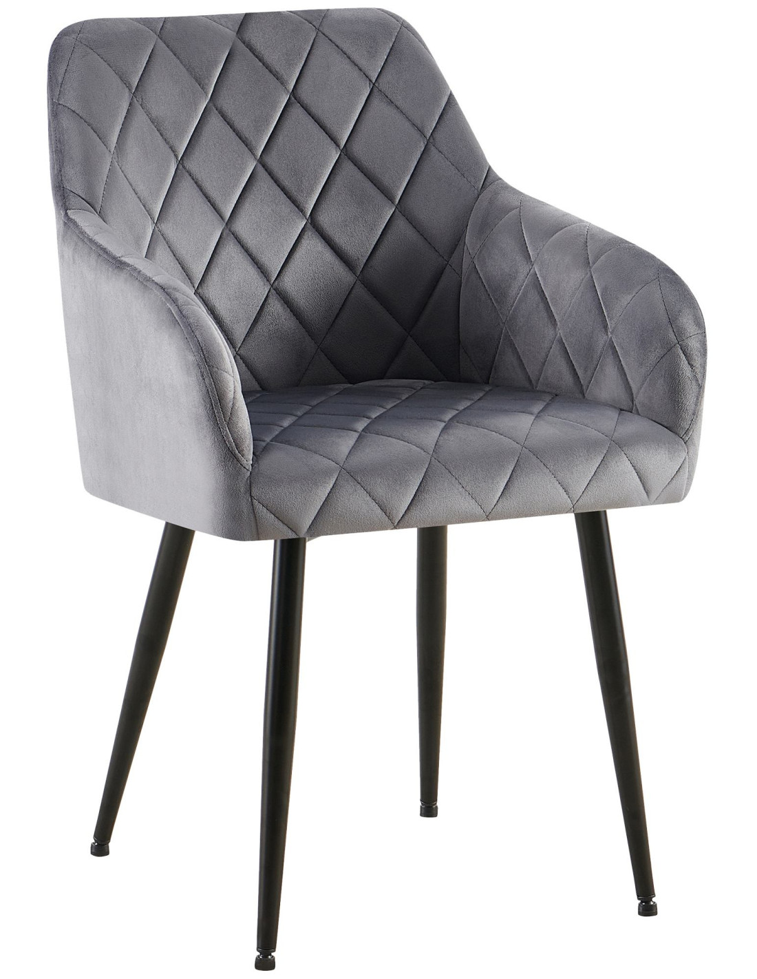 Fauteuil de table matelassé moderne en Velours Gris foncé Métal Noir Arvella