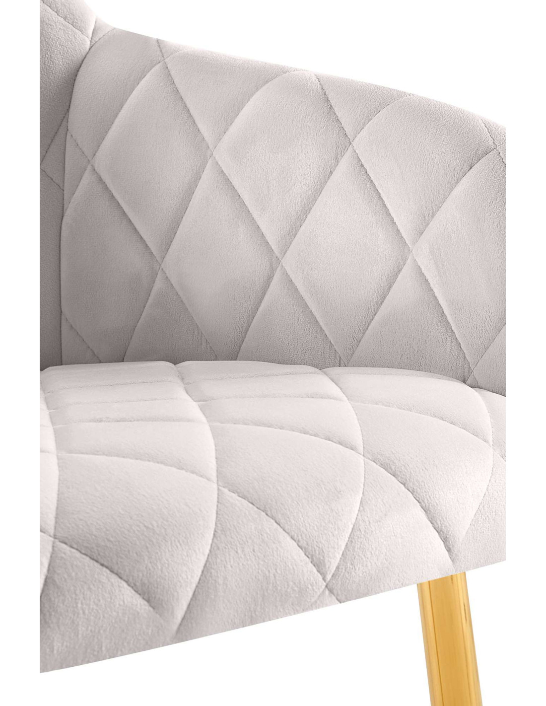 Fauteuil de table matelassé moderne en Velours Gris Métal Doré Arvella