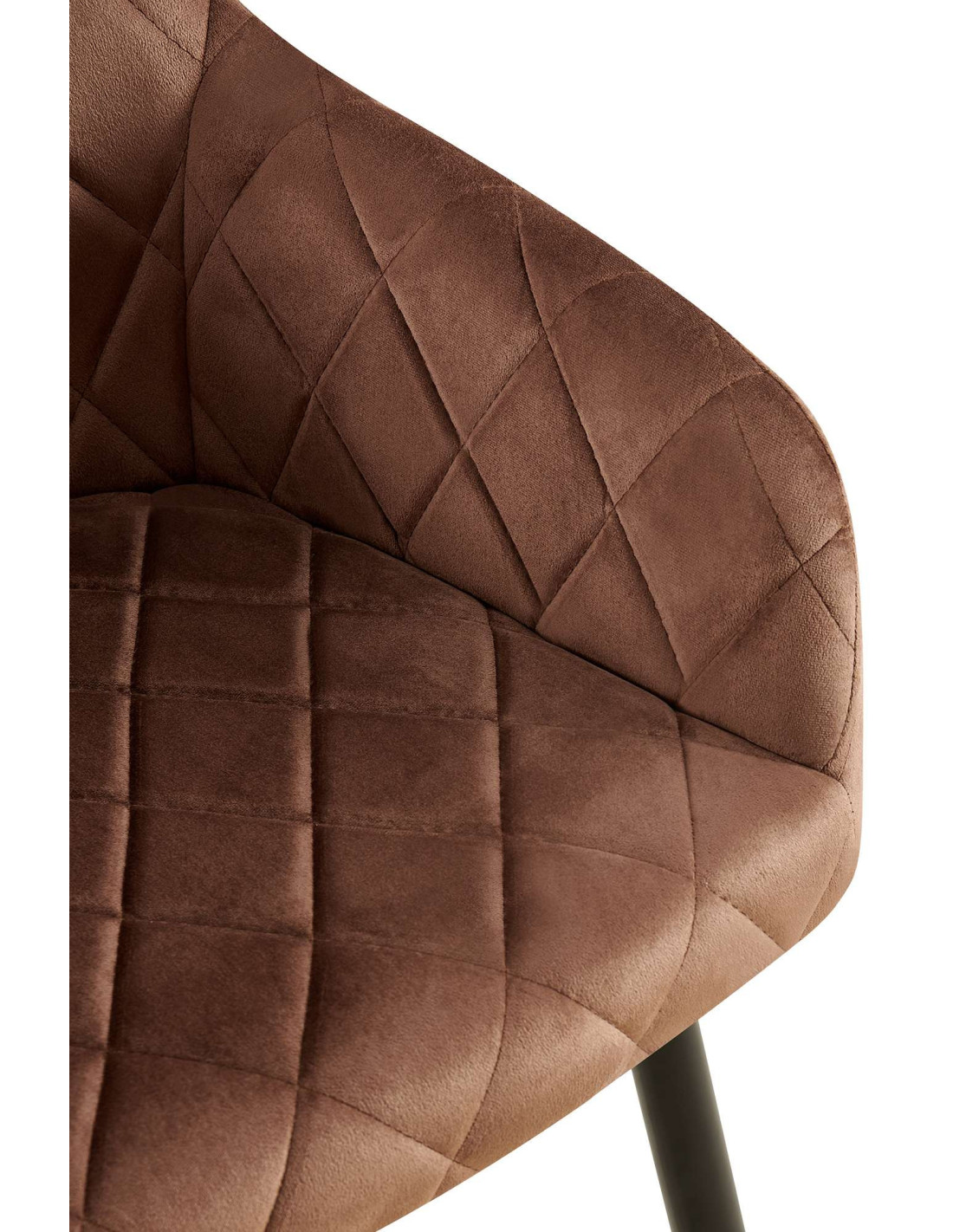 Fauteuil de table matelassé moderne en Velours Marron Métal Noir Arvella - 6