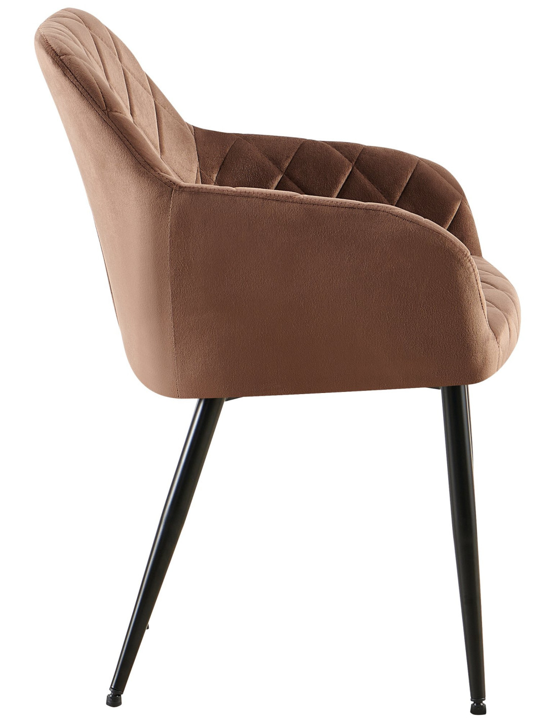 Fauteuil de table matelassé moderne en Velours Marron Métal Noir Arvella - 1