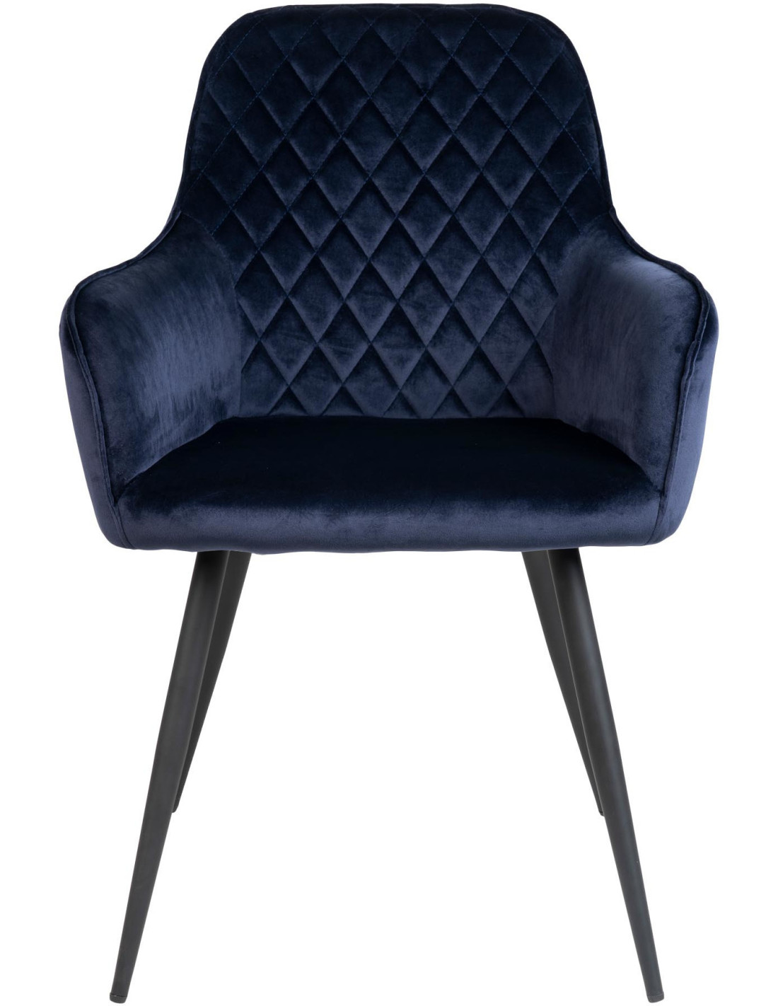Fauteuil de table matelassé Velours Bleu Métal Noir Harbo (Lot de 2)