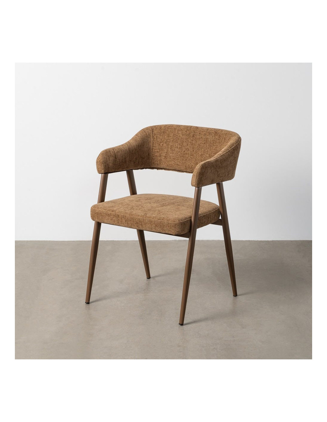 Fauteuil de table mid-century moderne Tissu Métal Marron Bervin (Lot de 2)