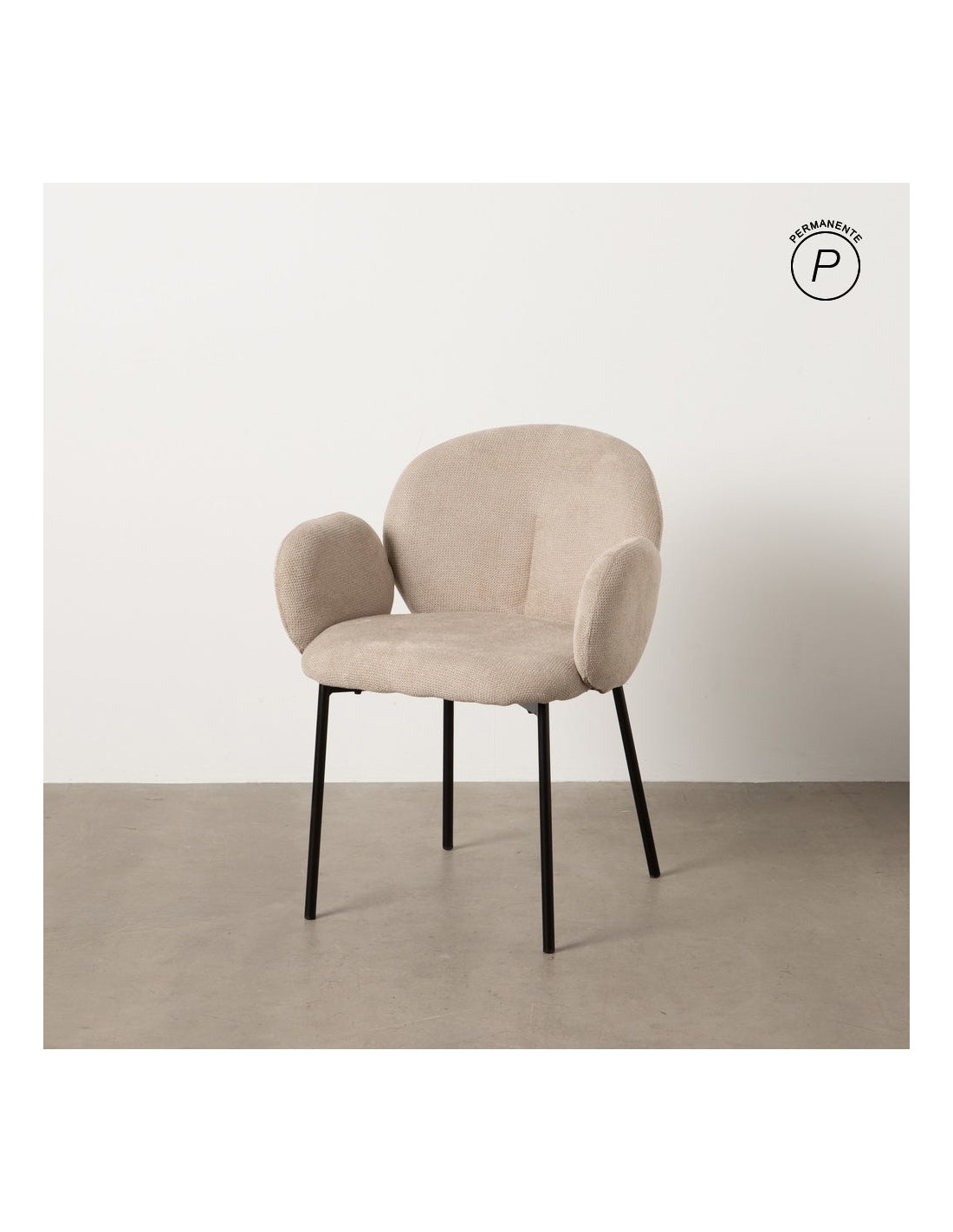 Fauteuil de table moderne arrondi Tissu Beige Métal Noir Alvero (Lot de 2) - 8