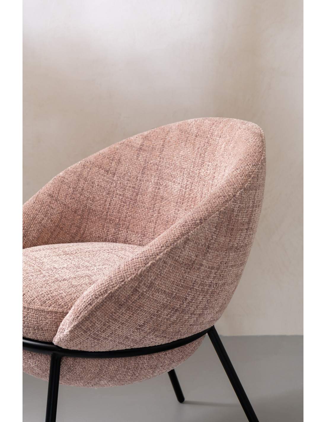 Fauteuil de table moderne boule en Tissu Rose clair Métal Noir Jopal - 1