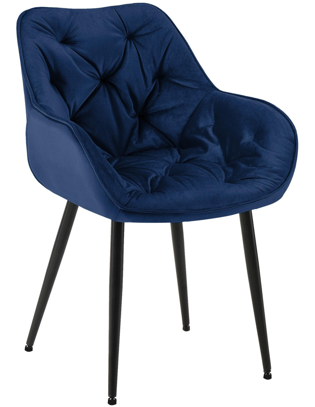 Fauteuil de table moderne capitonné en Velours Bleu foncé Métal Noir Adrina