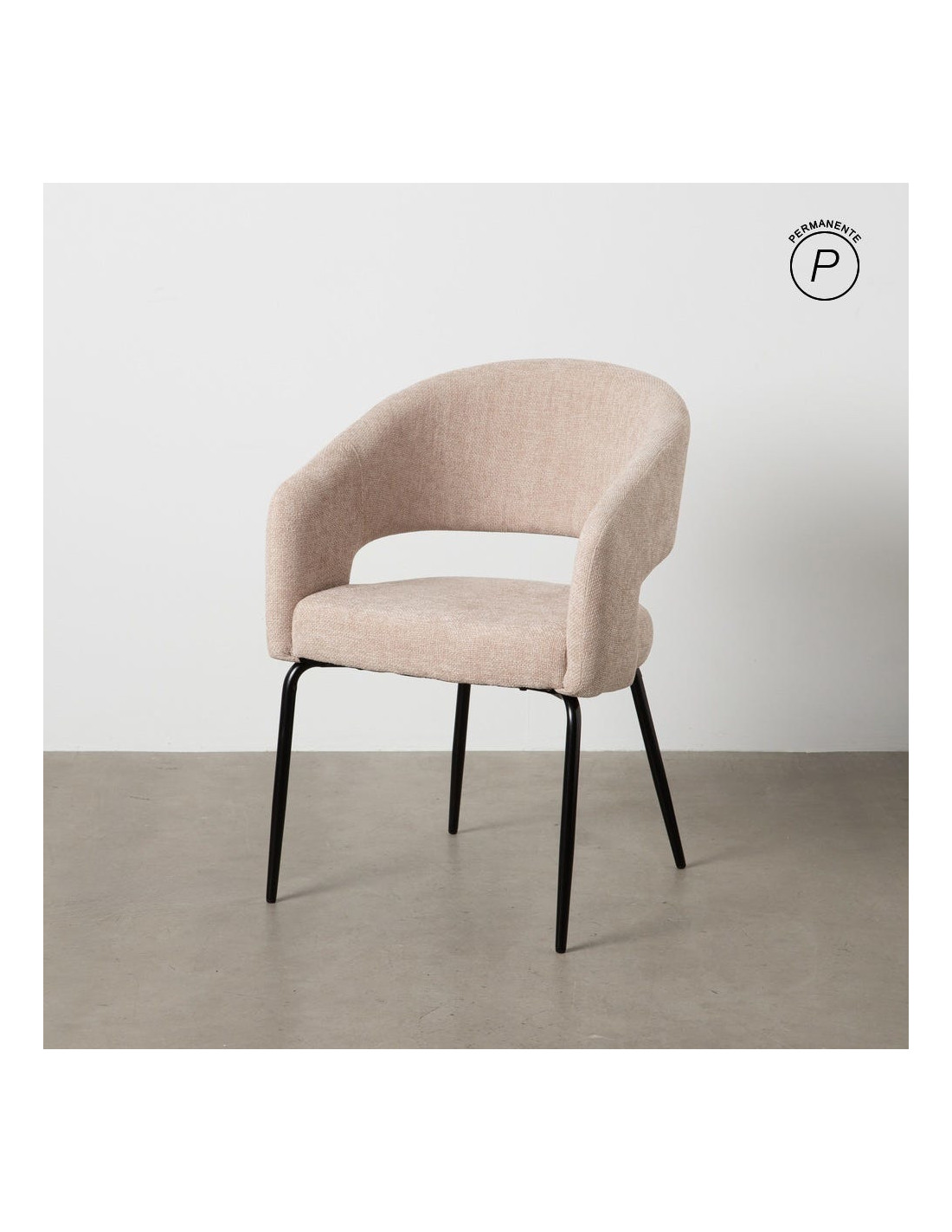 Fauteuil de table moderne chic Tissu Beige Métal Noir Ivreno (Lot de 2)