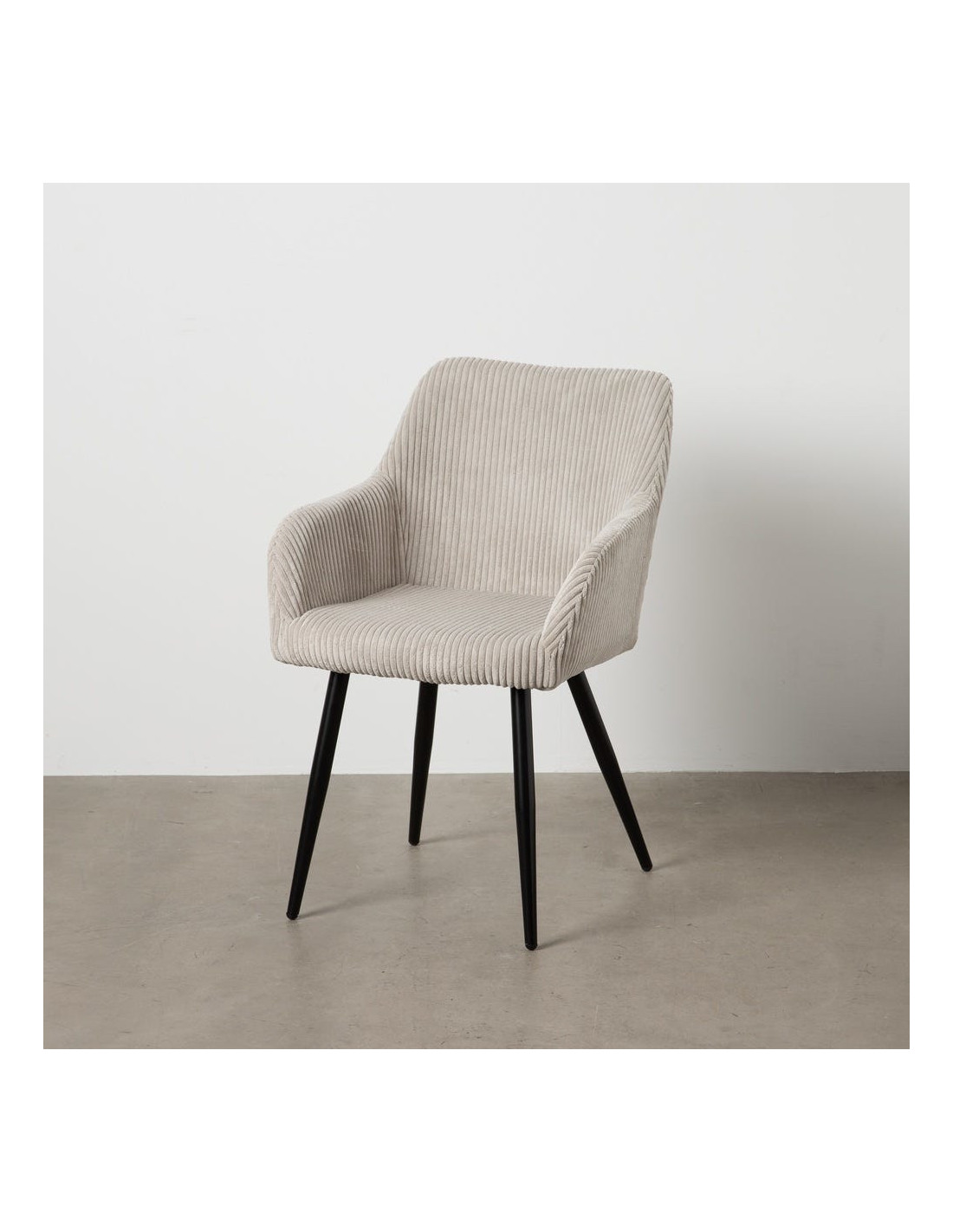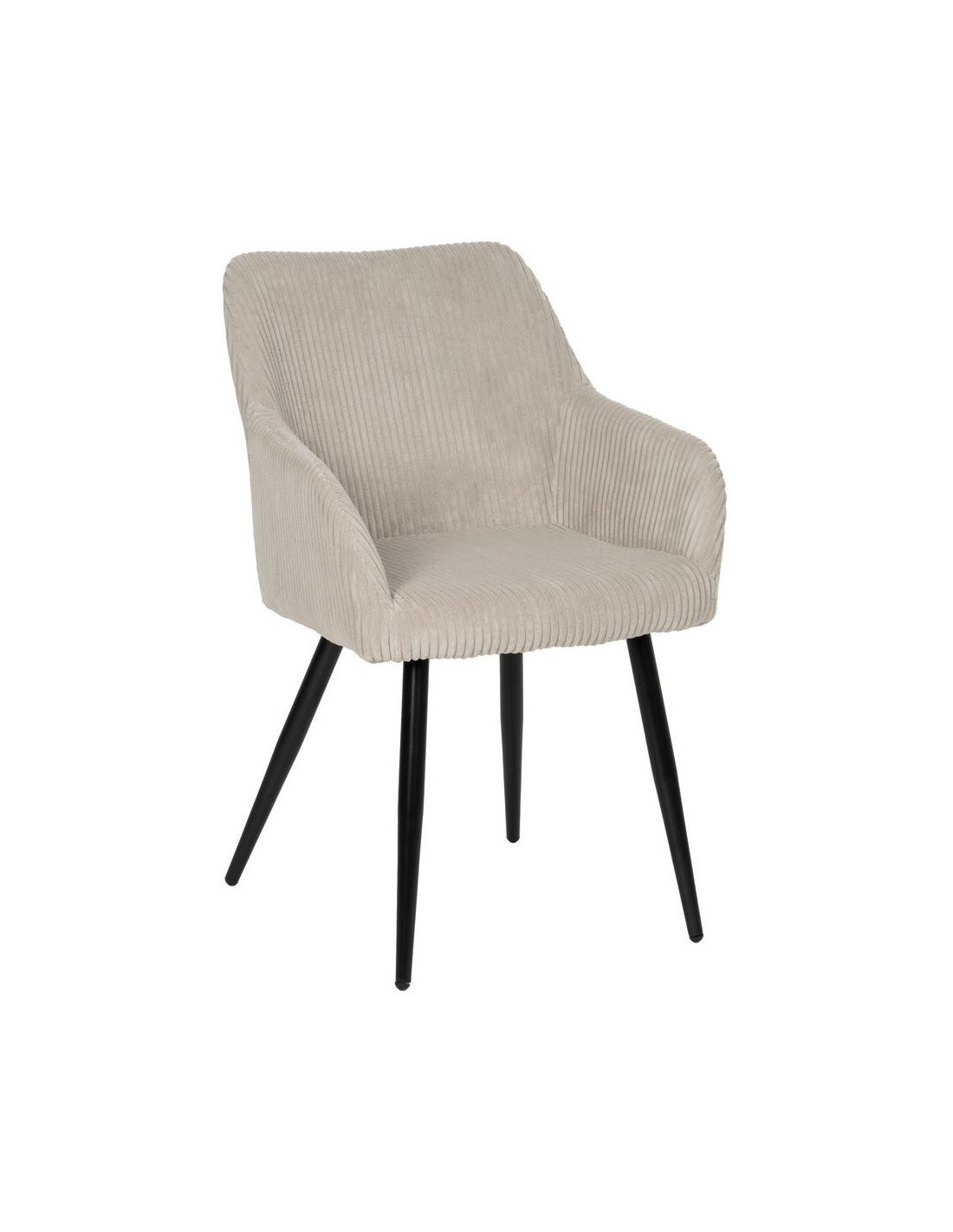 Fauteuil de table moderne chic Velours Beige Côtelé Métal Noir Belira (Lot de 2)