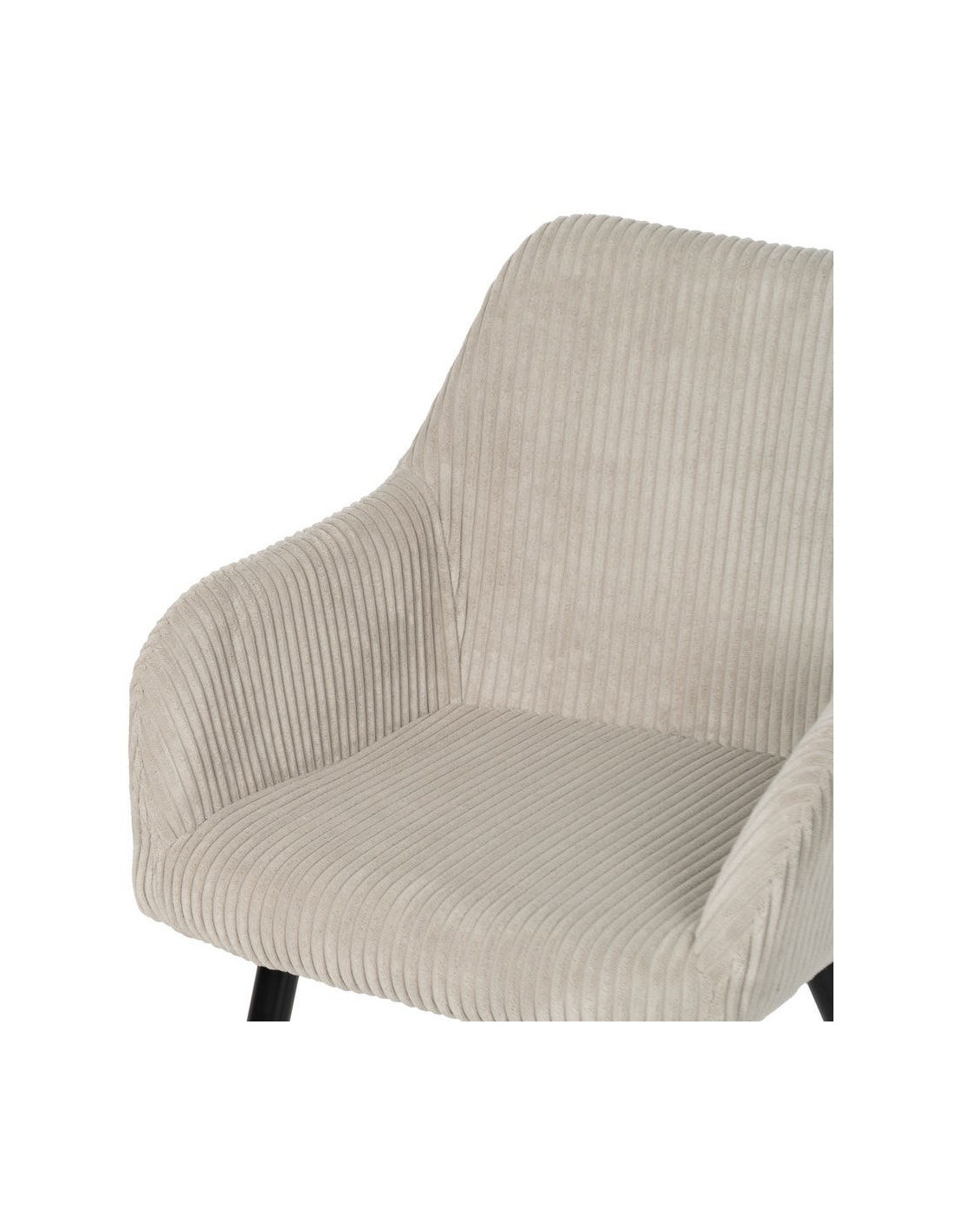 Fauteuil de table moderne chic Velours Beige Côtelé Métal Noir Belira (Lot de 2) - 4